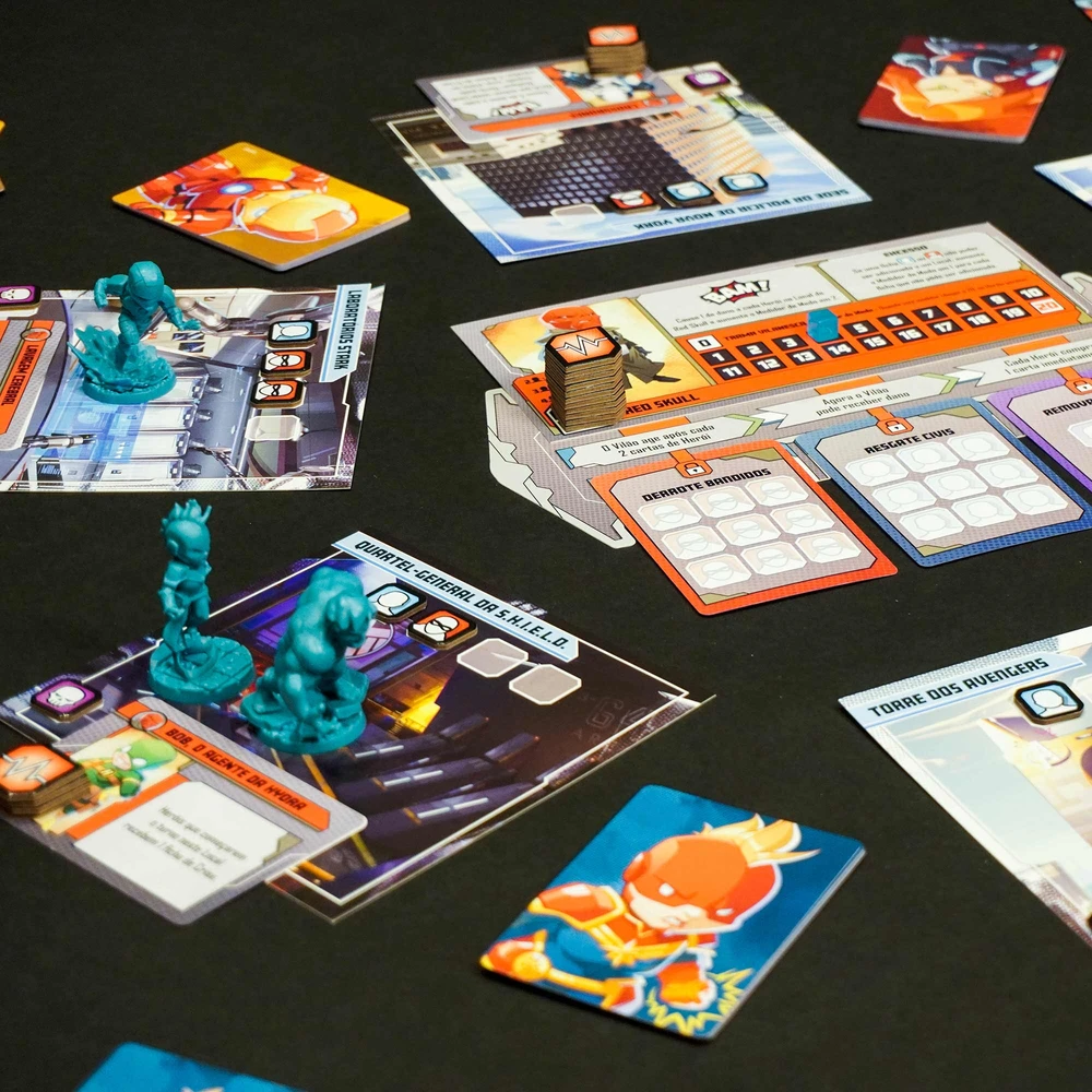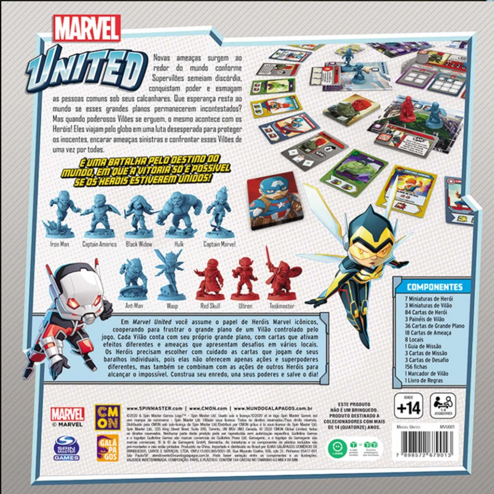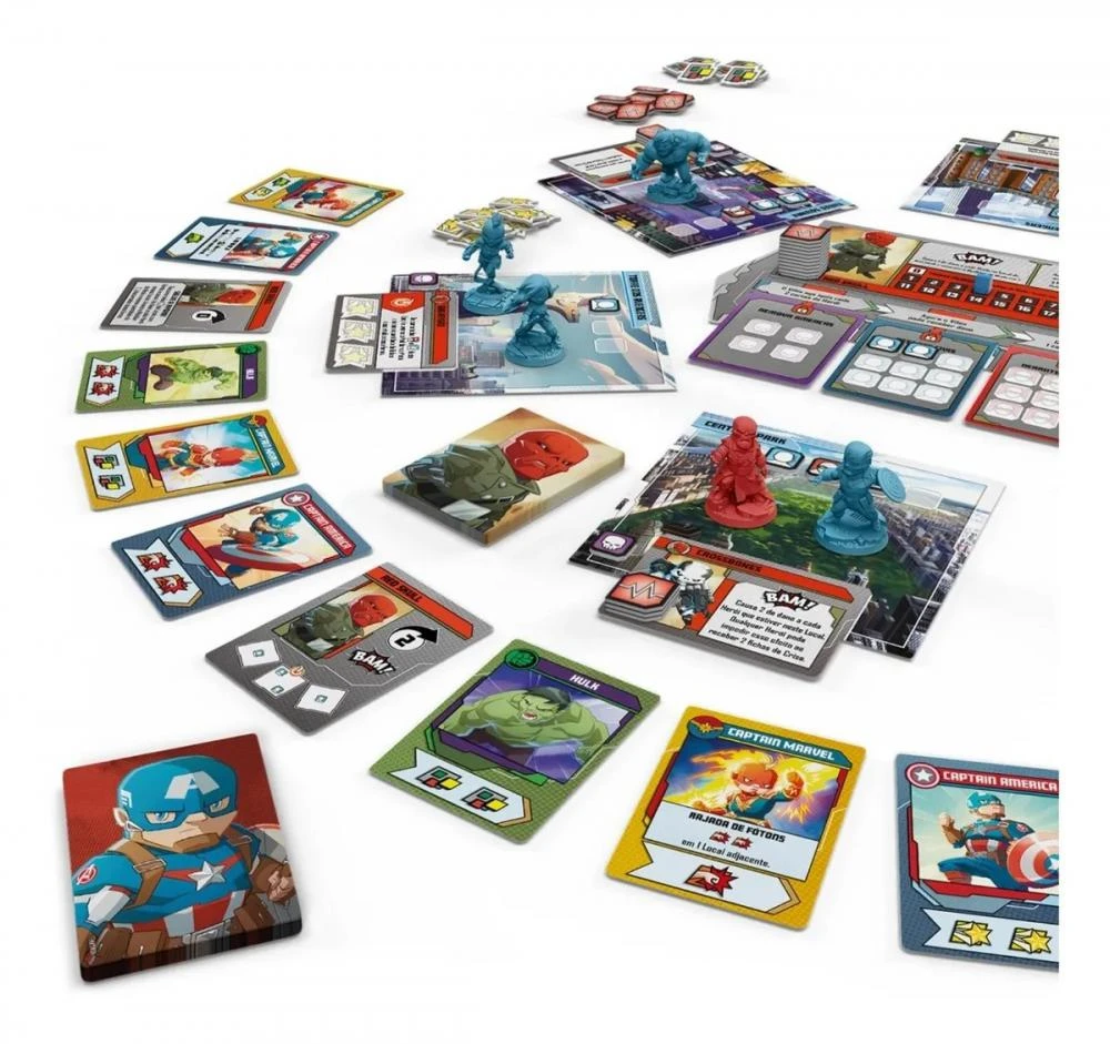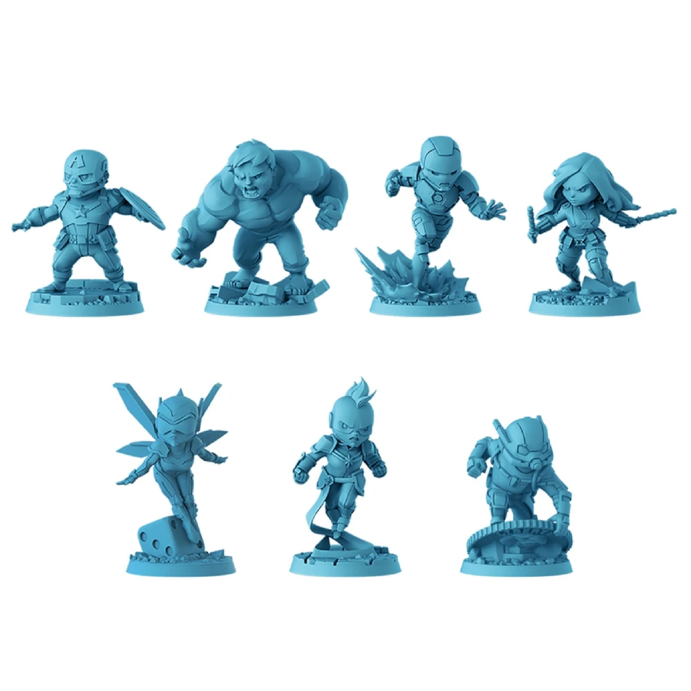 São sete diferentes heróis (Capitão América, Hulk, Capitã Marvel, Homem de Ferro, Viúva Negra, Homem Formiga e Vespa) e três vilões (Caveira Vermelha, Ultron e Treinador), cada um com sua miniatura e baralho exclusivo!