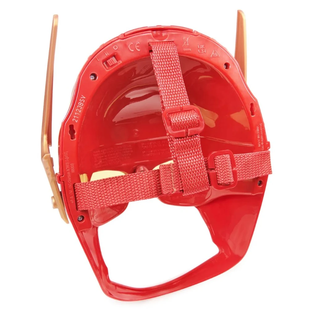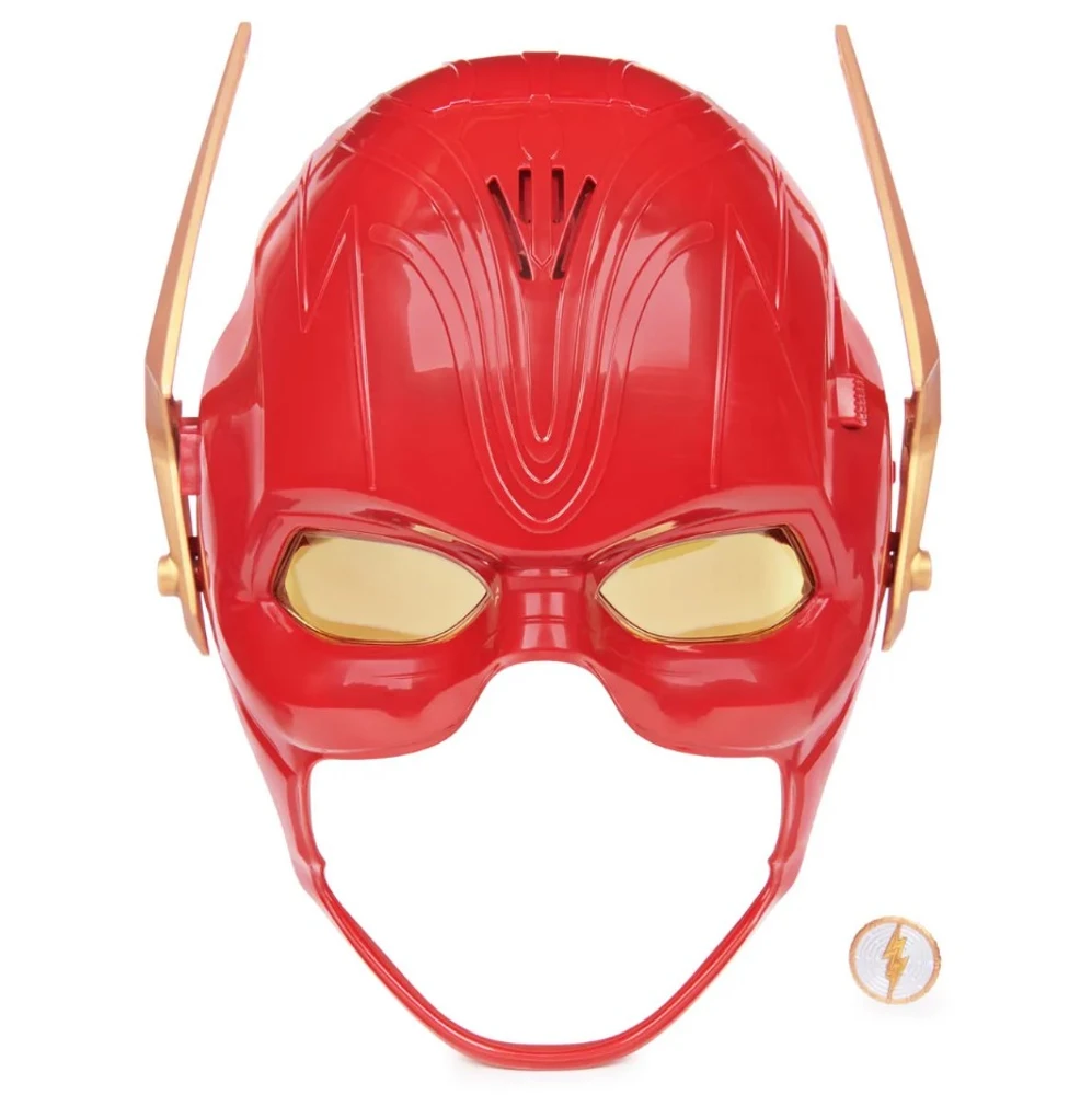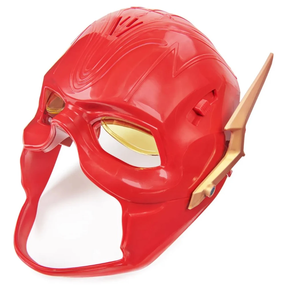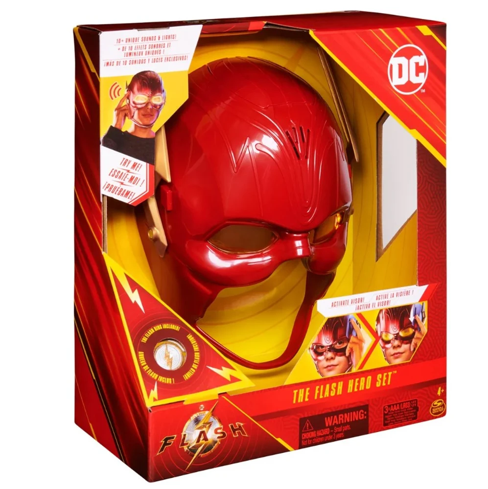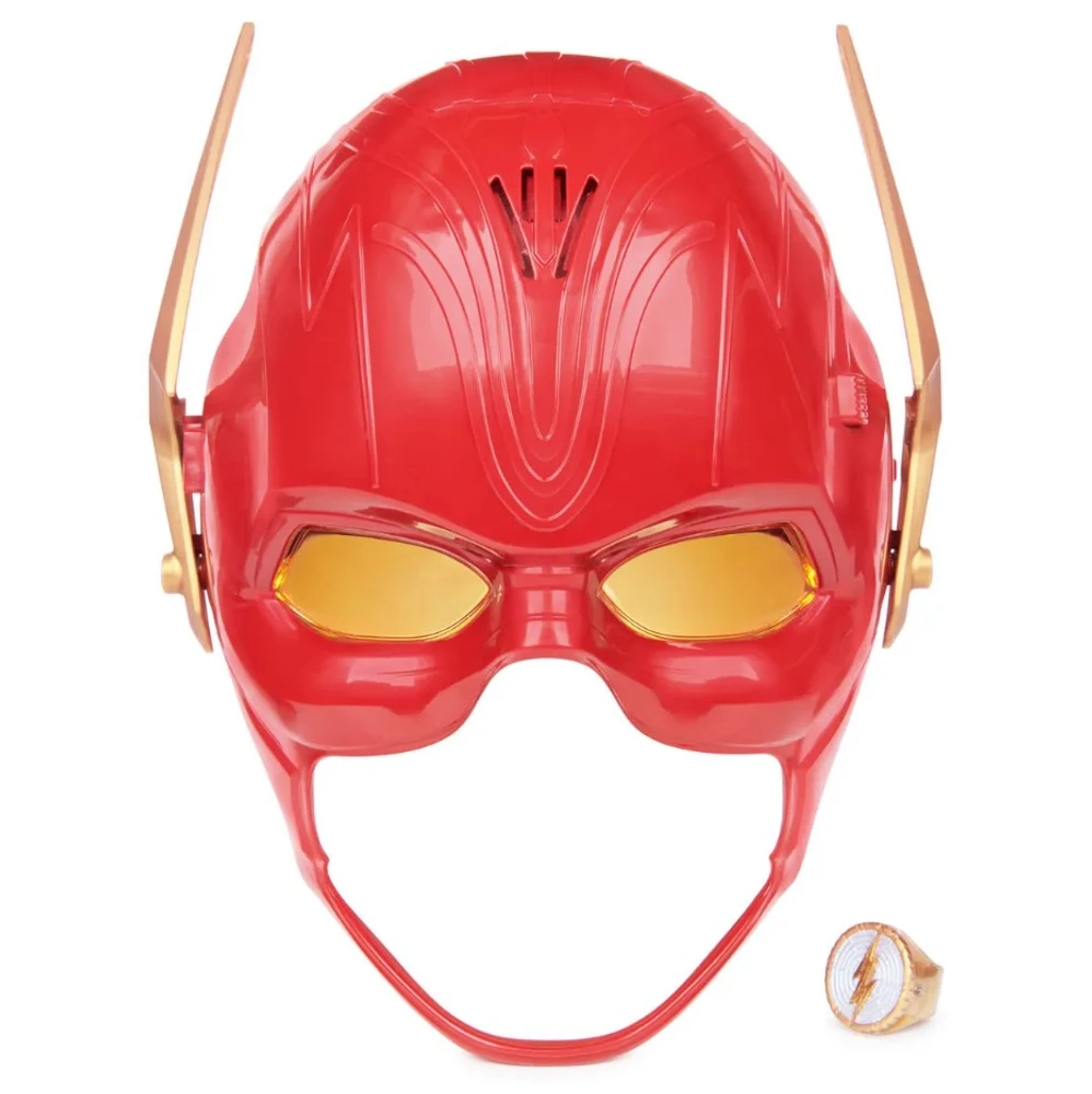 Agora você pode fingir ser o seu herói favorito, o Flash! Com a máscara do Flash e seu anel você pode se sentir o herói mais rápido do mundo! Ao abaixar o visor da máscara o visor acende suas luzes e recria os sons do personagem no filme. A máscara e o anel são esculpidos detalhadamente igual ao estilo do filme.