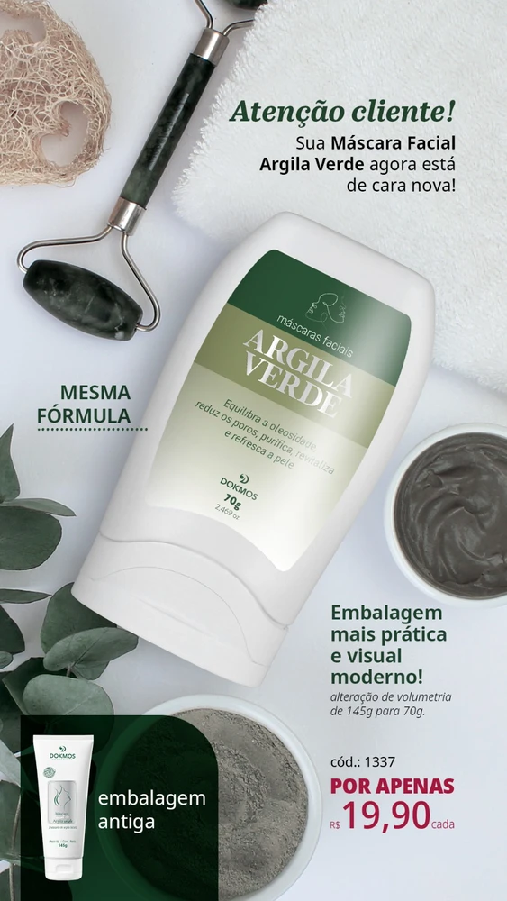 Purificação Profunda: A argila verde é conhecida por suas propriedades absorventes, removendo impurezas e toxinas, deixando a pele limpa e fresca. Ideal para peles oleosas e mistas, ela equilibra a produção de sebo, promovendo um aspecto saudável e radiante.