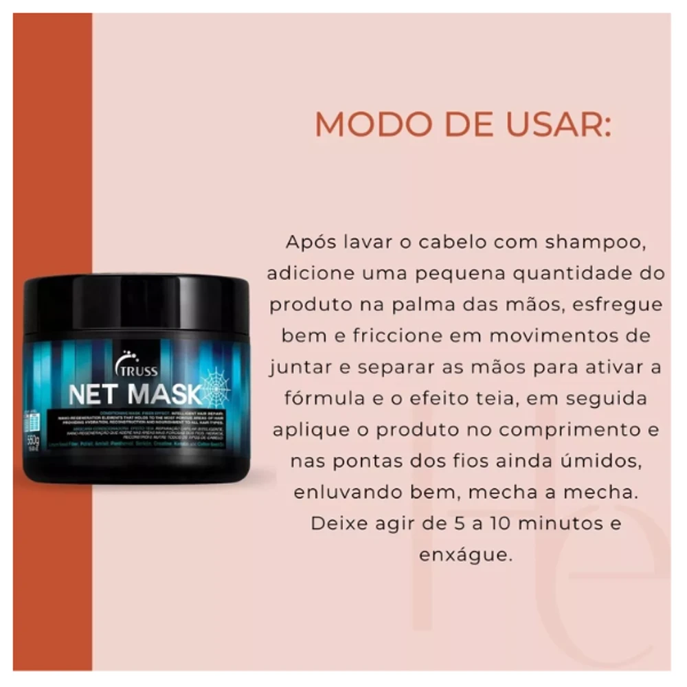 A Máscara Truss Net Mask é um tratamento intensivo desenvolvido para revitalizar e reparar profundamente os cabelos danificados. Com uma fórmula rica em ativos potentes, ela promove a reconstrução dos fios, proporcionando brilho, maciez e resistência. Ideal para todos os tipos de cabelo, especialmente aqueles que passaram por processos químicos ou estão expostos a danos mecânicos e ambientais.