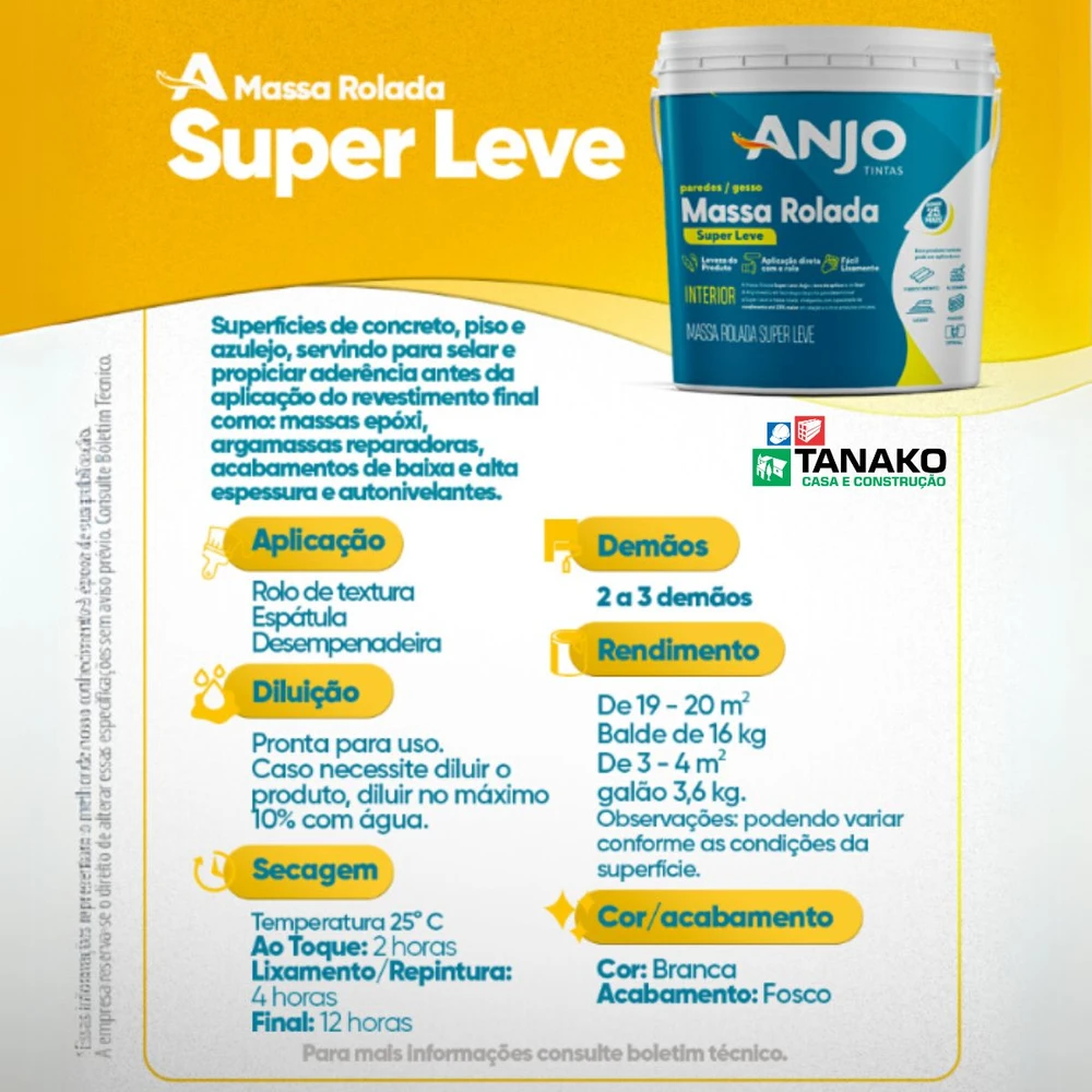 Massa Corrida Super Leve 16kg Anjo – Interior e Tetos com Acabamento Impecável