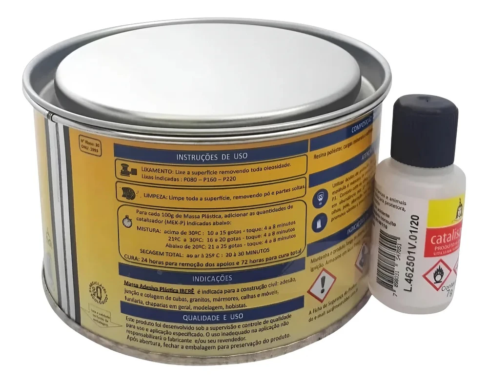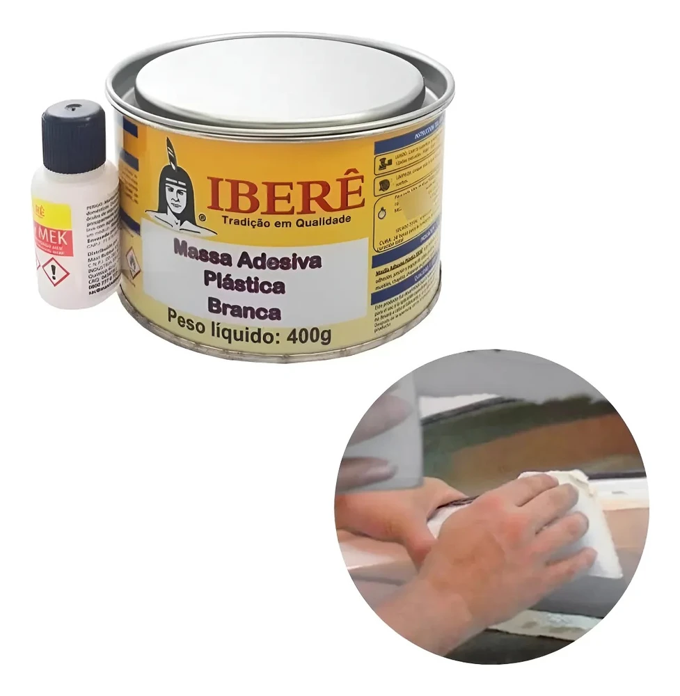A massa adesiva plástica desenvolvido pela Ibere é indicada para a construção civil: adesão, junção e colagem de cubas, granitos, mármores, calhas e móveis, funilarias, chaparias em geral e modelagem. Aplicação: Lixar a área em que a massa adesiva plástica iberê será aplicada. Em seguida, limpar a superfície para que se obtenha uma ótima adesão do produto. Com o auxílio de um aplicador manual, aplique quantas camadas forem necessárias até que a área esteja mais alta do que a superfície ao redor.