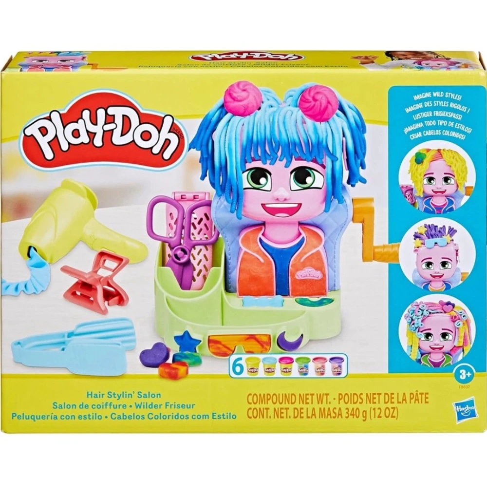 As crianças podem expressar seu estilo único com o conjunto Play-Doh Hair Stylin' Salon! Basta colocar um pouco de massa Play-Doh e começar a deixar crescer e modelar cabelos bobos de Play-Doh! Este kit Play-Doh inclui muitos acessórios Play-Doh divertidos, como um secador de cabelo para criar cachos, molde moicano, modelador e 2 placas diferentes para fazer diferentes texturas de cabelo. E com 340 g (12 onças) de massa Play-Doh, incluindo 3 latas de duas cores, as crianças podem fazer estilos longos ou curtos! Este playset interno é perfeito para brincadeiras imaginativas. Os conjuntos Play-Doh para meninas e meninos são ótimos presentes para crianças a partir de 3 anos. Hasbro, Play-Doh e todas as propriedades relacionadas são marcas registradas da Hasbro.