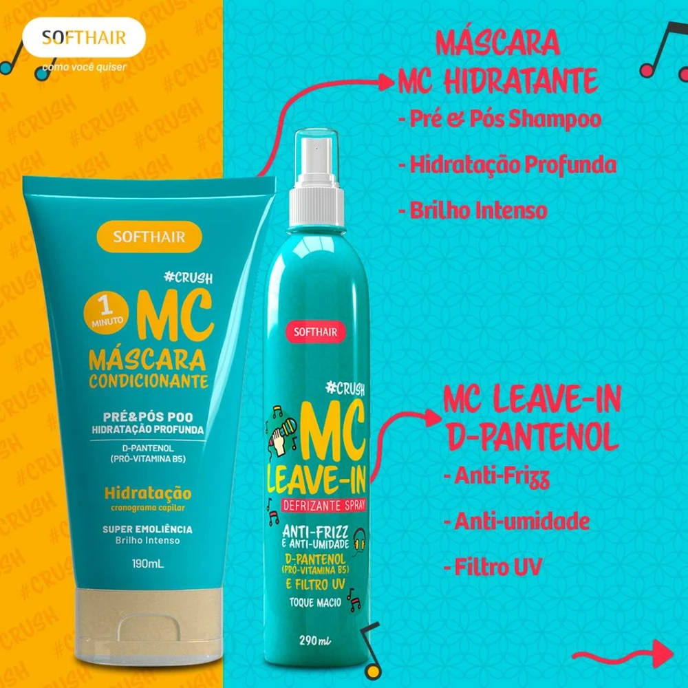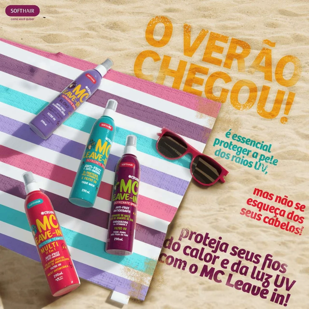 Mc Leave-In D-pantenol Soft Hair 290ml Spray Proteção diária dos fios! Os cabelos passam constantemente por muitos danos, principalmente os térmicos, causados por processo mecânico (chapinha, secador) e os danos externos relacionados à poeira, chuva e raios solares. O Leave In Soft Hair é ideal para proteção diária dos fios em todos esses aspectos, além de deixar um brilho incrível e maravilhoso nos fios, deixa você com madeixas de causarem impacto. O Melhor produto para proteção e prevenção de danos que você respeita. Pode ser usado em todos os tipos de cabelo. Possui ação condicionante! pH: 4,00 | Low Poo | Anti-Frizz | Anti-umidade | Filtro UV