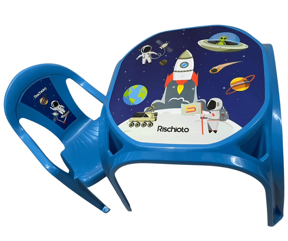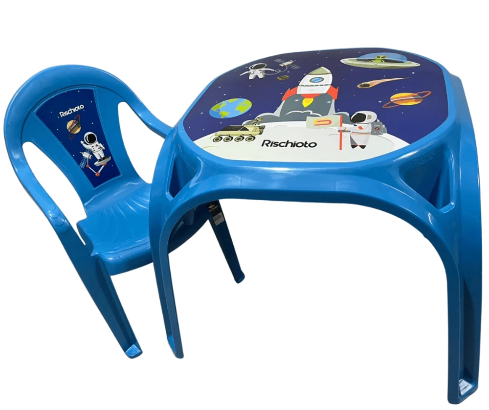 Mesa Infantil Azul + 01 Cadeira Infantil Rischioto Kit