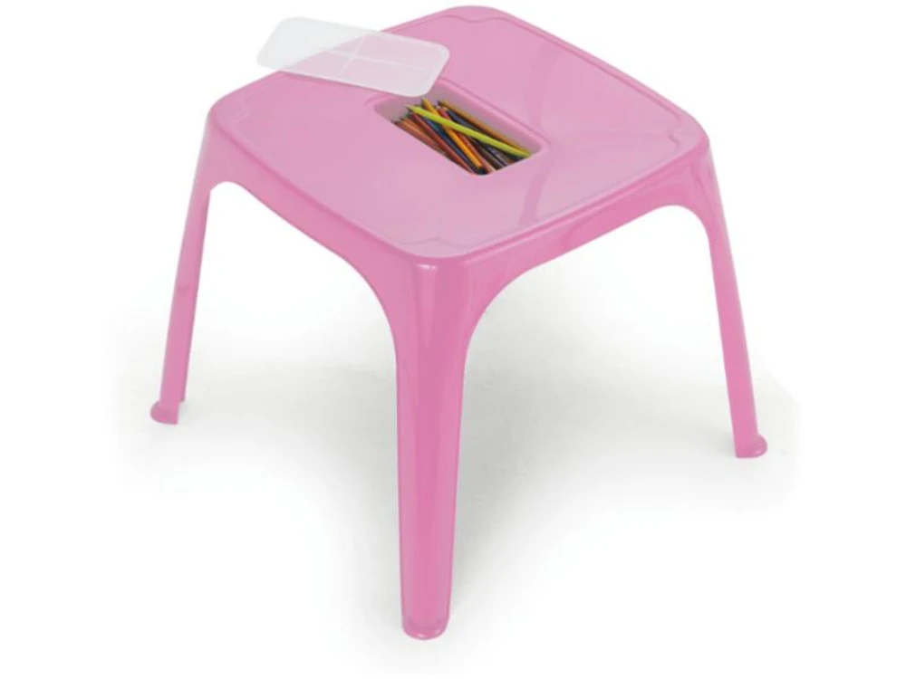 Com altura de 57 cm e formato quadrado, a mesa oferece um espaço confortável para as atividades dos pequenos.