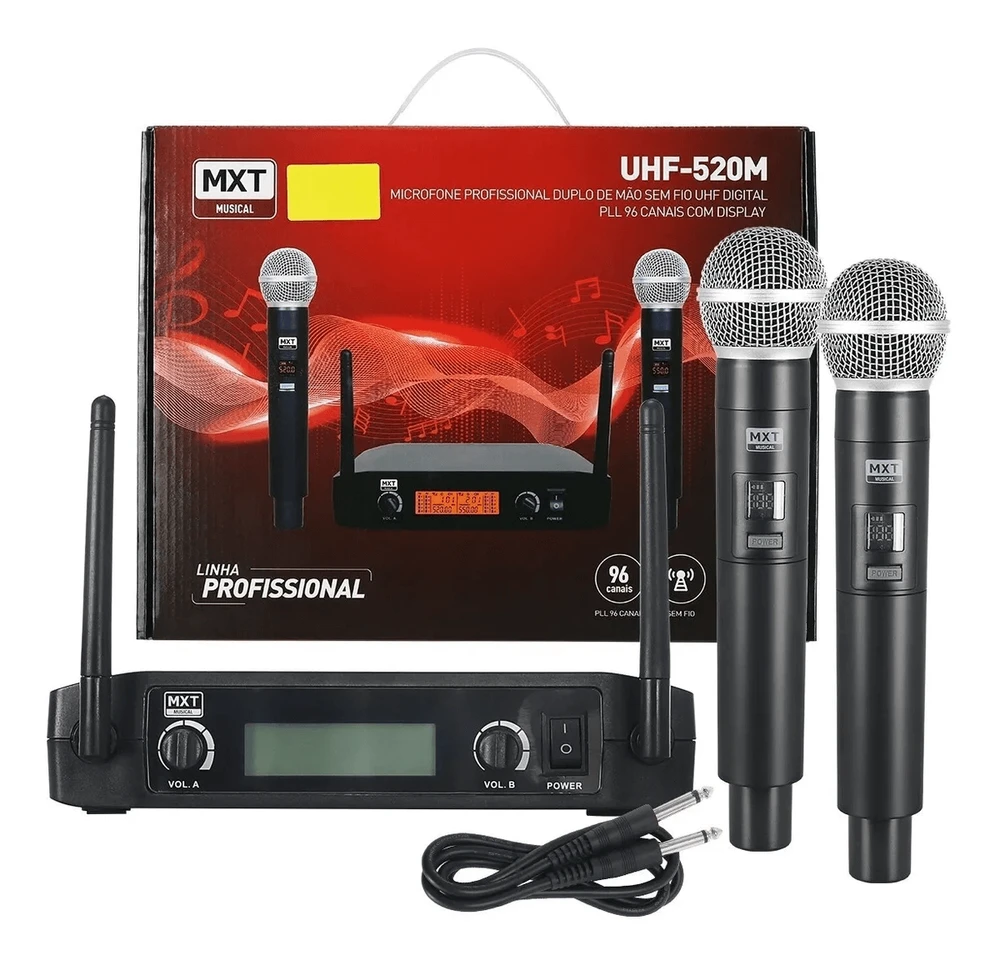 Microfone Sem Fio Duplo MXT UHF-520M Digital 96 Canais com Display