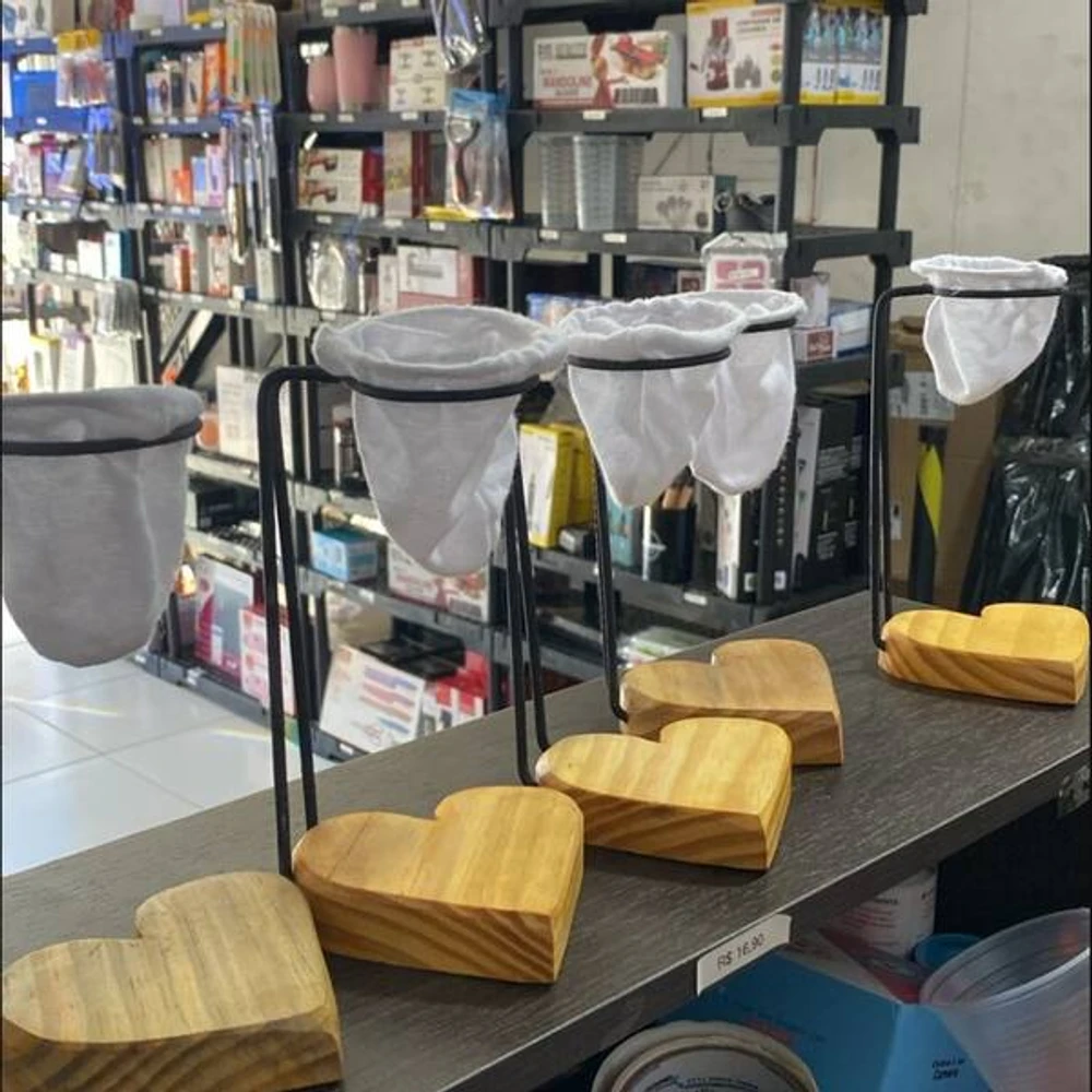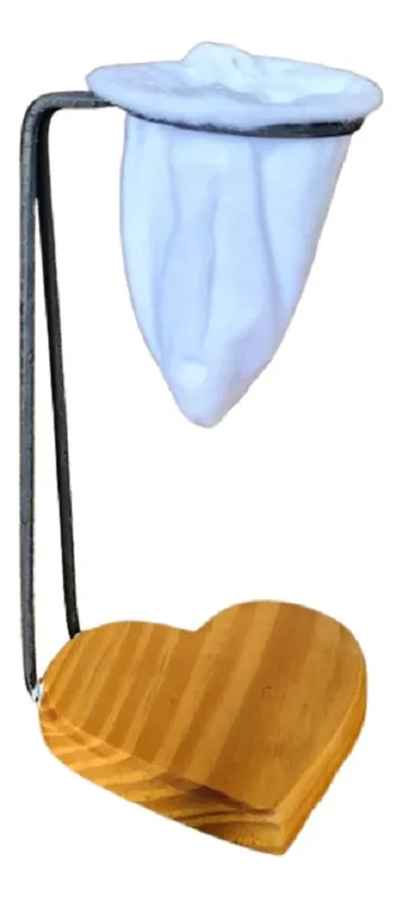 Dimensões:diâmetro do aro e filtro - 6 cm base de madeira - 10 cm Altura total - 19 cm