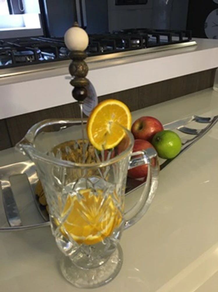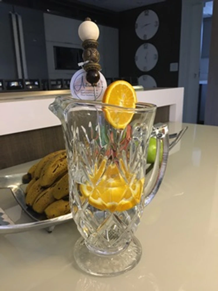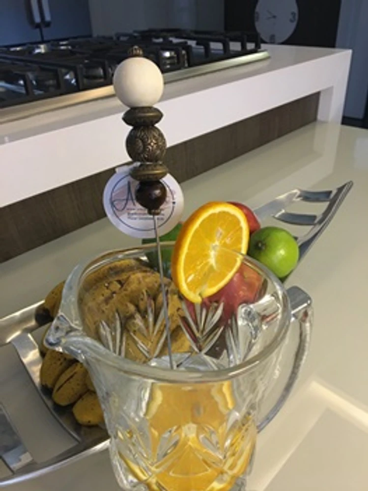 Misturador de Suco  feitas com bolas em madeira e assessórios na cor marfim