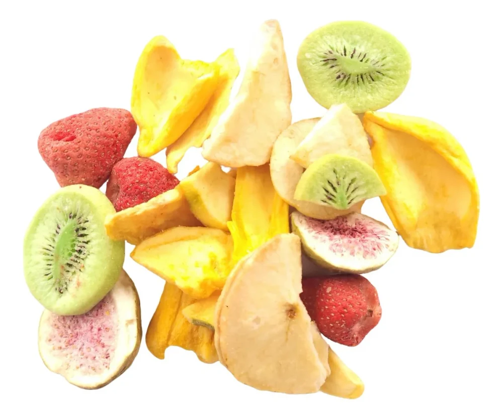 São produzidas através de um método avançado de desidratação a frio, conhecido como liofilização. Esse processo preserva os nutrientes, cor, aroma e sabor da fruta fresca, resultando em um produto leve e crocante