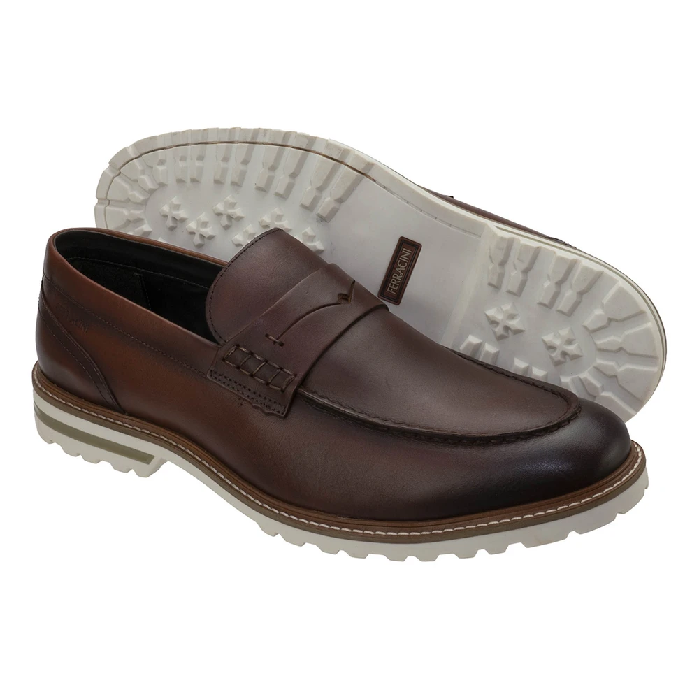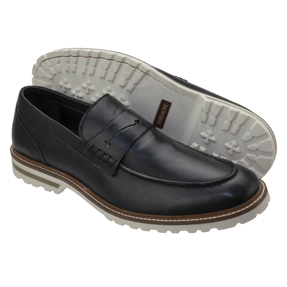 Sapato em couro todo costurado com solado em borracha antiderrapante. Muito macio e confortável.