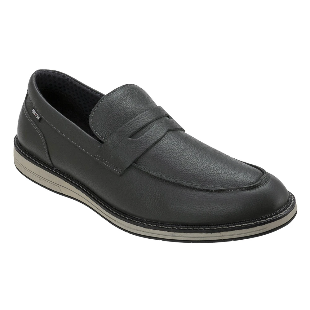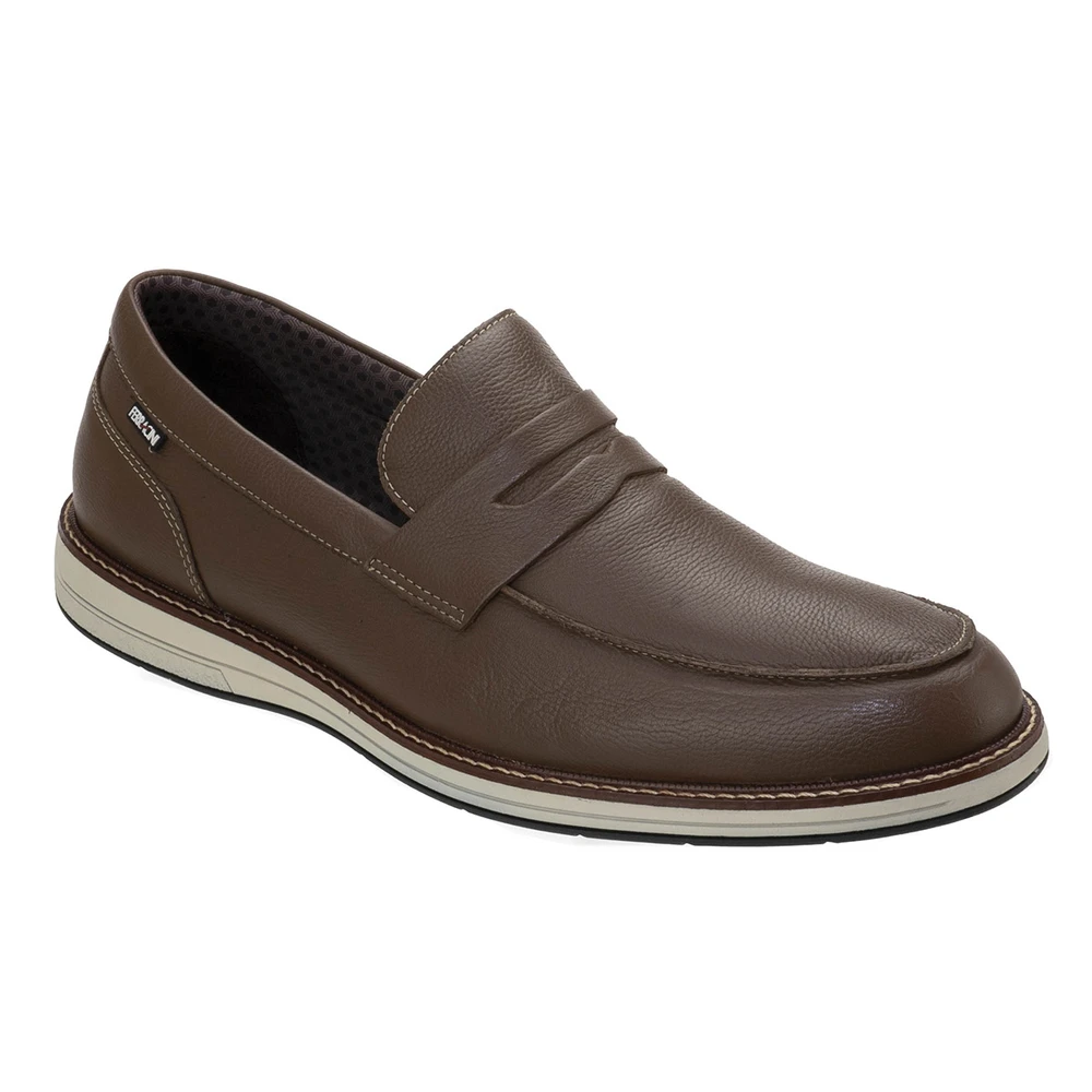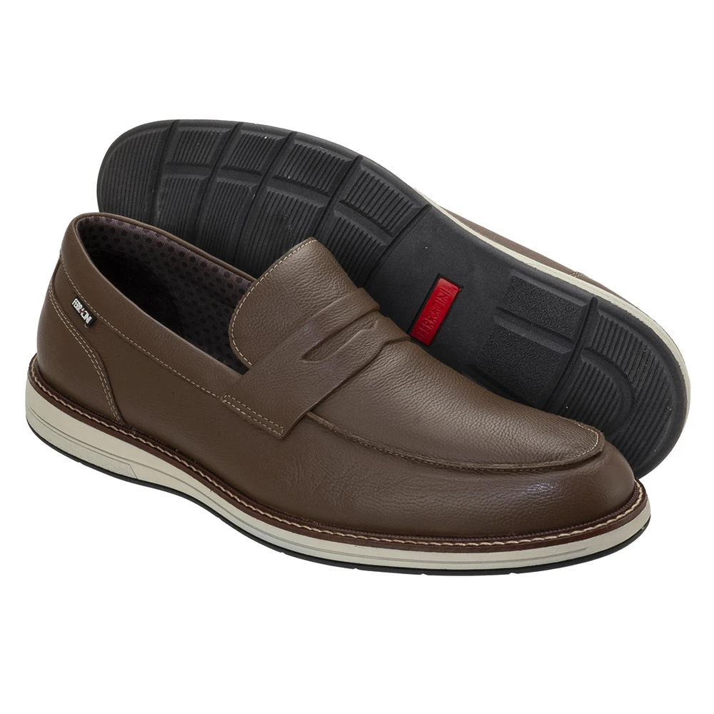 Sapato em couro com solado em borracha antiderrapante. Muito confortável.