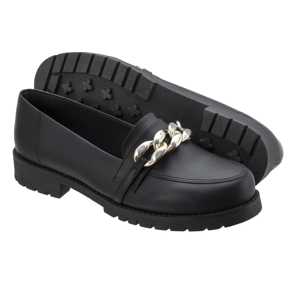 Mocassim em laminado sintético com solado em borracha antiderrapante e salto de 3 cm de altura combina conforto e estilo, perfeita para quem busca um toque de elegância sem abrir mão do bem-estar. Com um design moderno, se ajustam ao pé, proporcionando segurança e suporte.