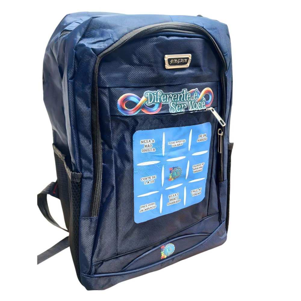 Apresentamos a mochila “Diferente é ser Você”, desenvolvida com carinho e atenção aos detalhes para oferecer muito mais do que funcionalidade. Com capacidade de 40 litros e fabricada em poliéster de alta qualidade, essa mochila une praticidade, conforto e propósito. Seu design exclusivo traz uma estampa em DTF com a frase inspiradora “Diferente é ser Você”, reforçando a importância da autenticidade e do respeito às individualidades. Com dimensões amplas de 50 cm de altura, 30 cm de profundidade e 15 cm de largura, ela é ideal para o dia a dia escolar, passeios ou até sessões de terapia. Conta ainda com três bolsos espaçosos e um compartimento lateral para garrafa, facilitando a organização dos itens essenciais.