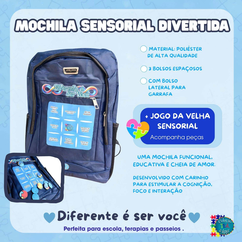 Mochila Educativa e Sensorial com Jogo da Velha Diferente é Ser Você