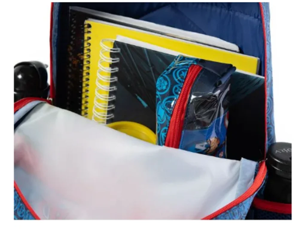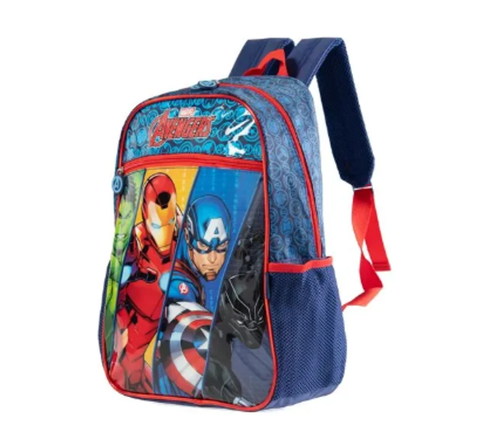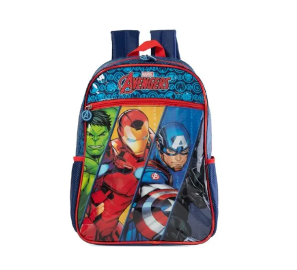 Mochila Escolar Masculina Vingadores: a escolha perfeita para pequenos fãs dos super-heróis mais icônicos da Marvel. Com design vibrante e resistente, apresenta estampas exclusivas de Hulk, Homem de Ferro, Capitão América e Pantera Negra, despertando a imaginação e o entusiasmo para o dia a dia escolar. Ideal para organizar livros, cadernos e materiais com seu amplo compartimento principal e bolso frontal prático.