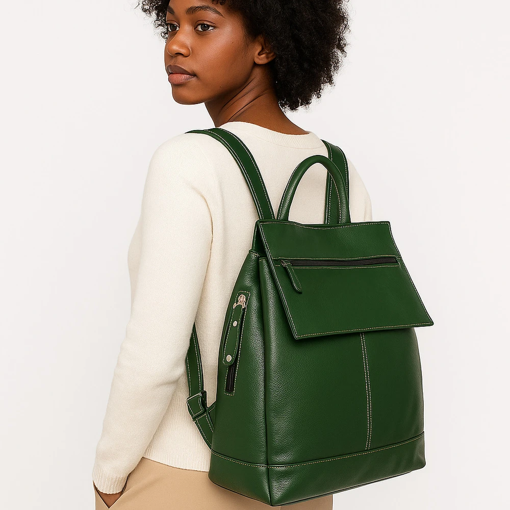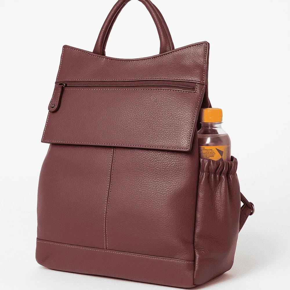 A Mochila Feminina de Couro Grd Zup une estilo e funcionalidade para o dia a dia da mulher moderna. Confeccionada em couro legítimo, oferece resistência e um toque sofisticado, perfeito para quem busca durabilidade sem abrir mão da elegância. Seu design espaçoso comporta desde itens essenciais até garrafas, com bolso lateral próprio para fácil acesso e praticidade.