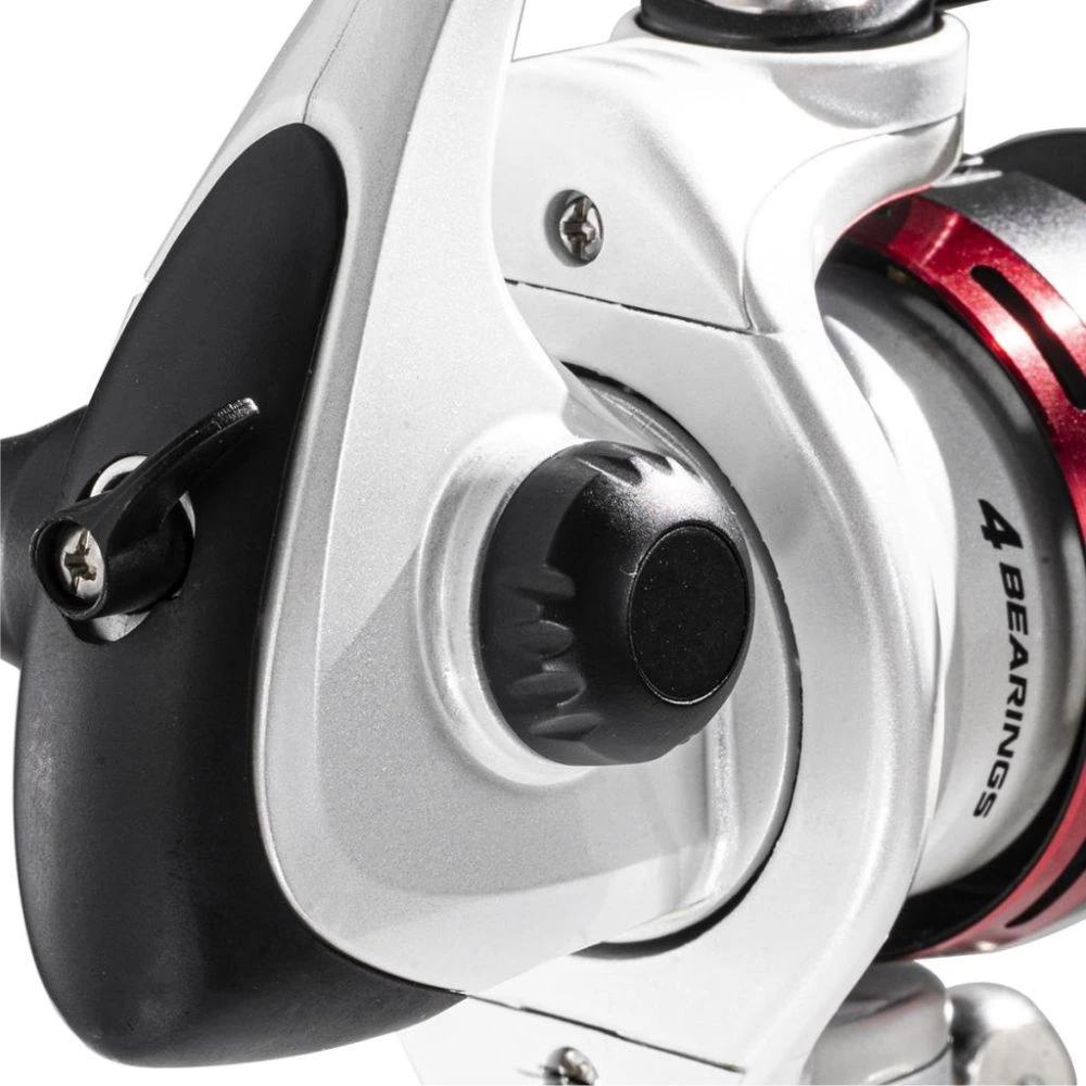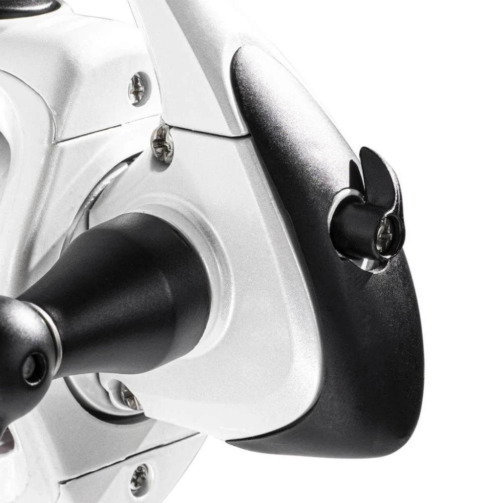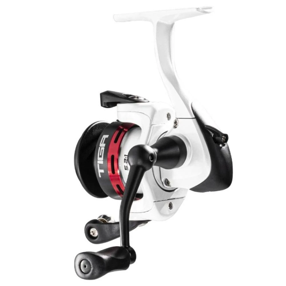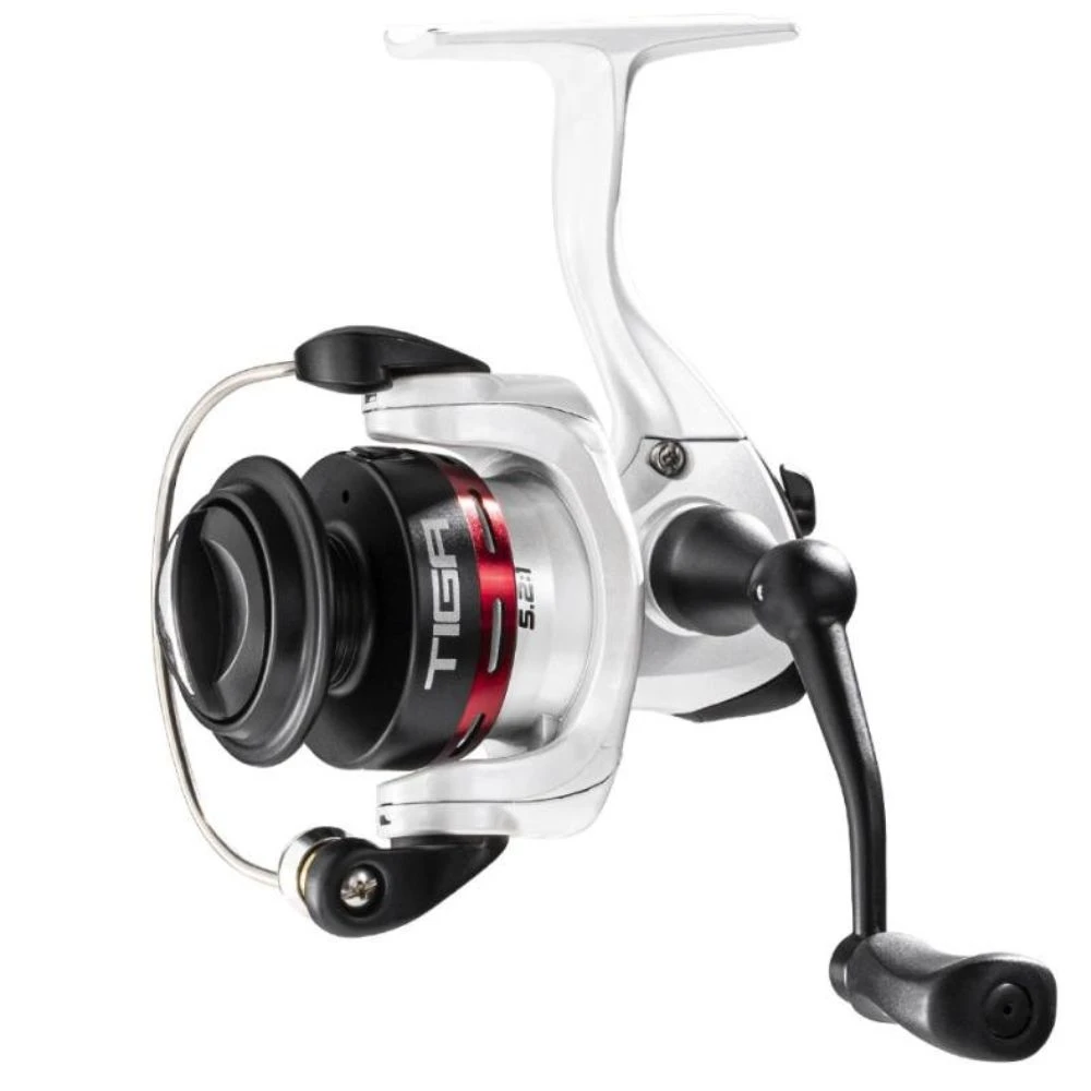 O molinete Tiga 400 com freio máximo de até 4kg, relação de recolhimento 5.2:1 e 3+1 rolamentos, o Tiga garante recolhimento rápido, fluido e silencioso. O knob emborrachado oferece firmeza e conforto ao manuseio, mesmo em longas jornadas.