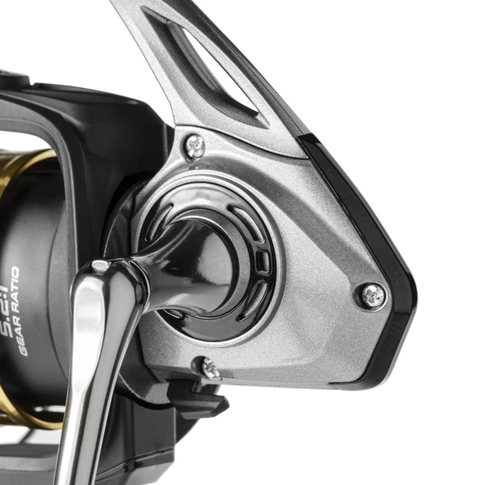 O Molinete Versus 4000 é composto por carretel e manivela em alumínio, corpo e rotor em grafite. Possui sistema de 4 rolamentos nos principais pontos, sendo 1 rolamento de esferas e 1 de roletes que apoiam o pinhão e 2 rolamentos de esferas que apoiam a coroa, garantindo o alinhamento perfeito entre coroa e pinhão, proporcionando maior durabilidade nas engrenagens e um recolhimento macio.