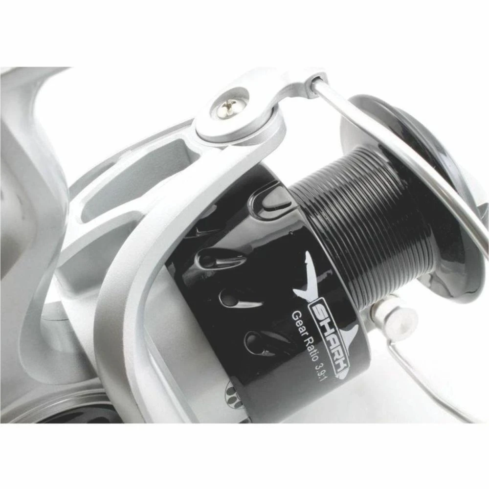 Molinete Shark 5000 Saint Plus conta com corpo e carretel em grafite de alta resistência e sua manivela é ajustada para direita ou esquerda, além de sua fricção conta com ajuste ponto a ponto. O Molinete Saint Plus Shark 5000 possui arrasto de até 5,5 kg, possui altíssima qualidade e acabamentos, um molinete versátil, é indicado para pescarias em rios, lagos, represas e pesqueiros.