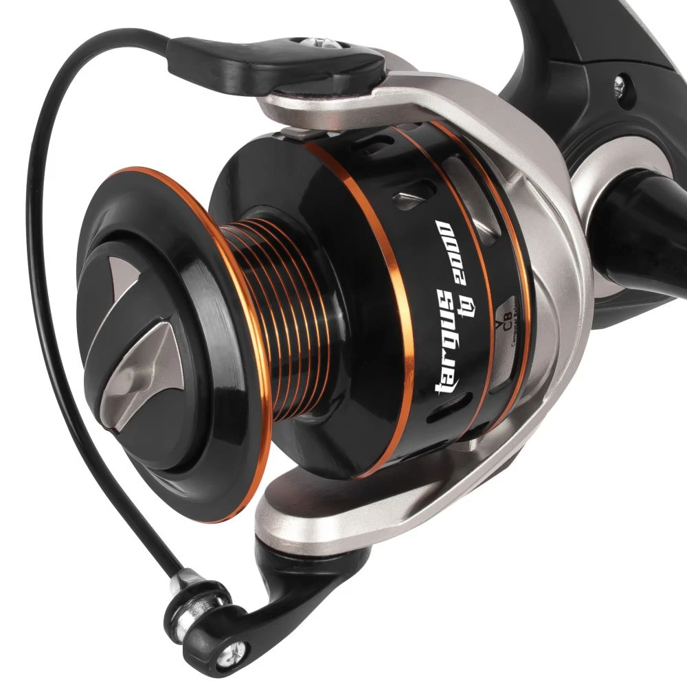 Molinete Saint Plus Targus 2000 altíssima qualidade e acabamentos, uma série de molinetes muito bom para qualquer tipo de pescaria, seja em rios, pesqueiros, lagos ou até mesmo no mar. Possui o carretel em alumínio, o que o torna ainda mais leve e resistente, sistema Anti-reverso Instantâneo. Seu corpo é desenvolvido em grafite altamente resistente. Balanceamento computadorizado, o que torna este molinete extremamente macio e equilibrado, trazendo muito conforto no seu manuseio.