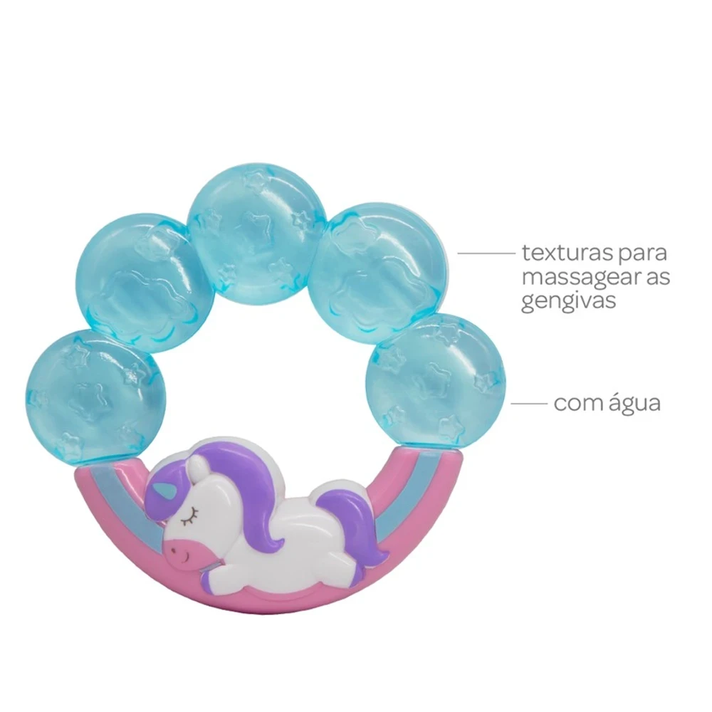 O Mordedor Buba com Água Unicórnio foi criado para oferecer alívio imediato e seguro durante a fase de dentição, trazendo um design delicado e encantador que atrai a atenção do bebê. Com formato de unicórnio e cores suaves, ele estimula a curiosidade e torna o momento de morder mais divertido e confortável.