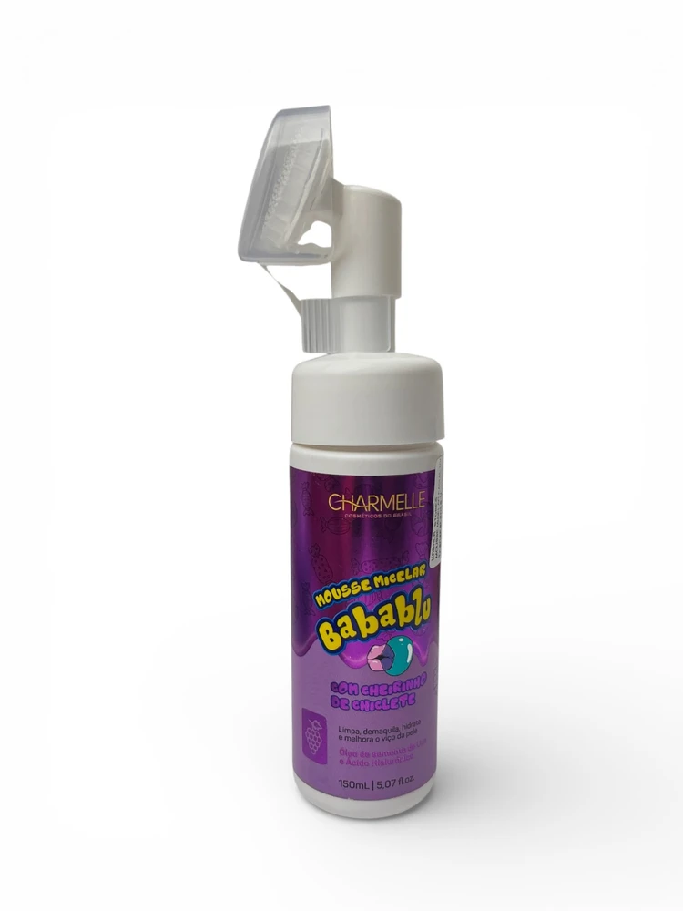 O Mousse Micelar Babablu da Charmelle é o produto ideal para quem busca uma limpeza facial completa, divertida e com um perfume nostálgico de chiclete de uva. Sua fórmula multifuncional atua como um poderoso demaquilante e higienizador, removendo as impurezas do dia a dia enquanto hidrata e melhora o viço natural da pele. Equipado com uma escova de silicone macia integrada ao aplicador, ele proporciona uma massagem relaxante que auxilia na esfoliação leve, deixando o rosto renovado e sedoso.