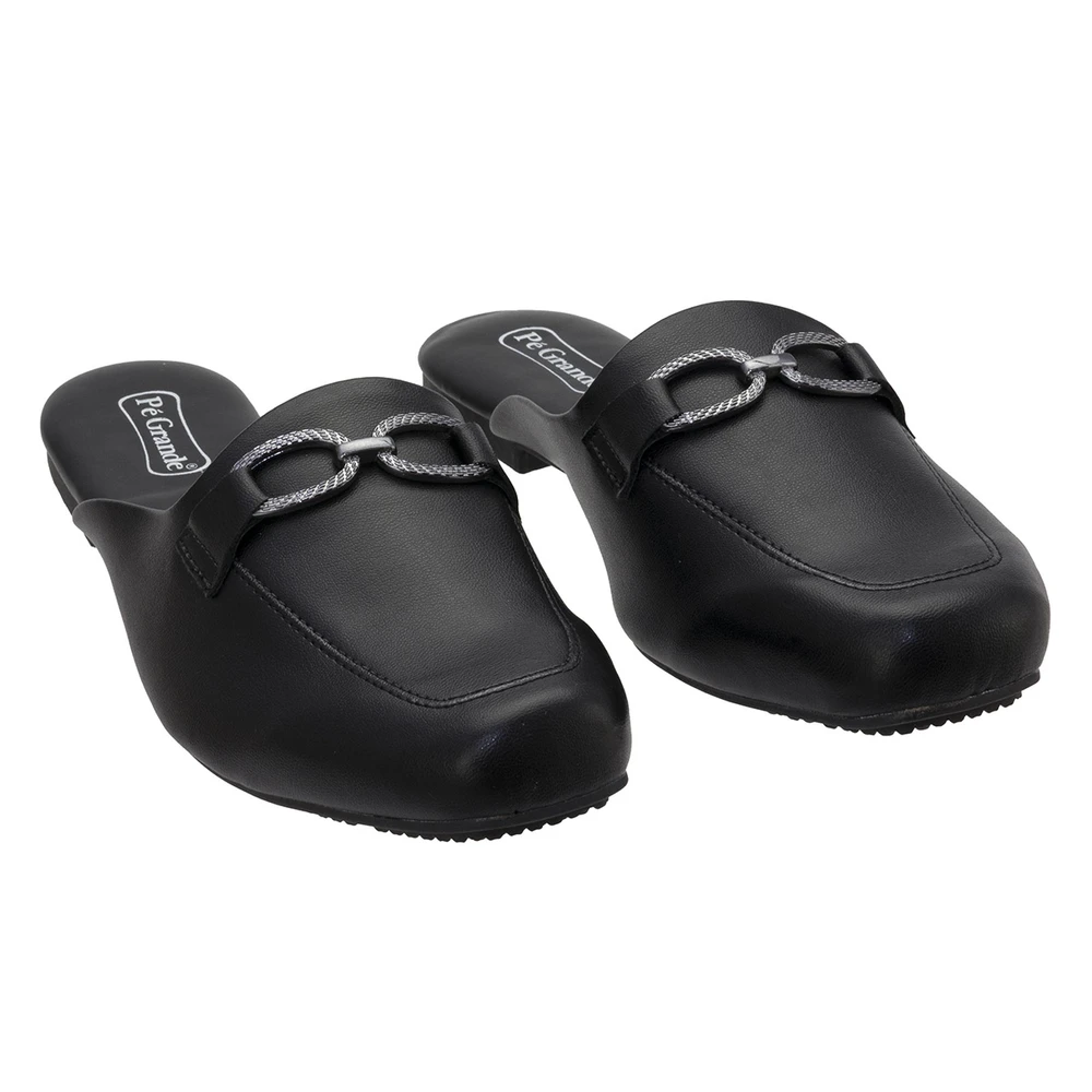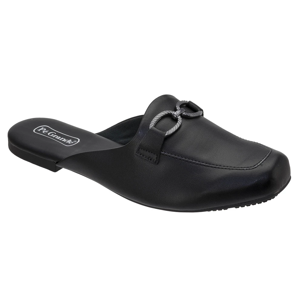 Mule em couro ecológico com solado em borracha antiderrapante.