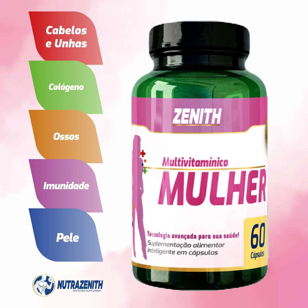 💖 Zenith Mulher | Polivitamínico Feminino com Vitaminas A a Z, Ferro, Ácido Fólico e Biotina – 60 Cápsulas