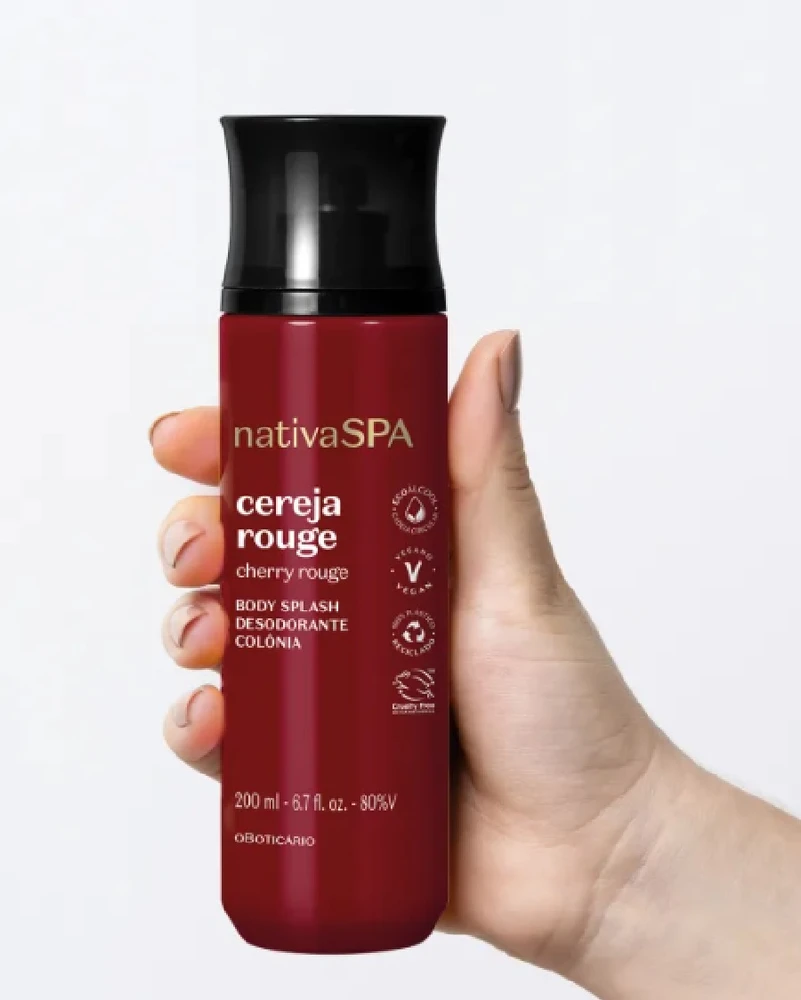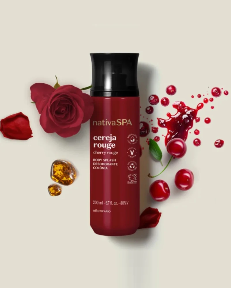 O Body Splash Desodorante Colônia Nativa Spa Cereja Rouge é o último passo do ritual de autocuidado, trazendo ainda mais potência olfativa e sedução em uma fragrância instigante e indulgente, com o exclusivo Acorde Sexy Cherry: ingredientes que entregam os aspectos licorosos e suculentos da Cereja!