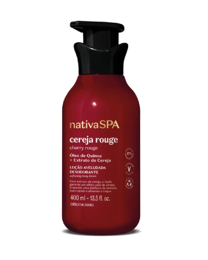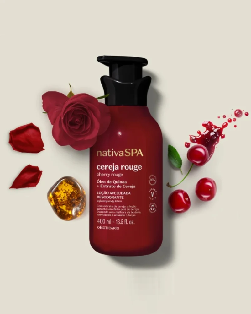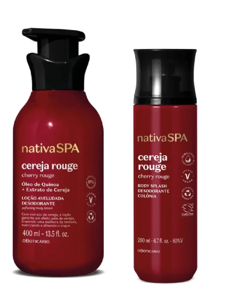 O Combo Nativa Spa Cereja Rouge tem tudo o que você precisa para deixar a sua pele mais macia e cheia de vida. Todo o seu corpo fica extremamente hidratado e ganha uma perfumação surpreendente. Esse combo dá um toque todo especial para a sua rotina diária de cuidados com a pele, transformando o seu dia a dia.