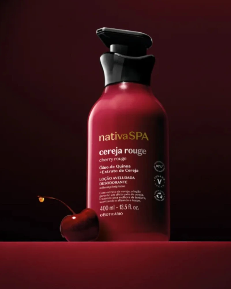 Com uma fragrância oriental frutal ambarada sensual, pela primeira vez Nativa SPA trará acordes para a sua linha: o Acorde Sexy Cherry proporciona um ritual poderoso, sensual e atraente para os cuidados com a pele.
