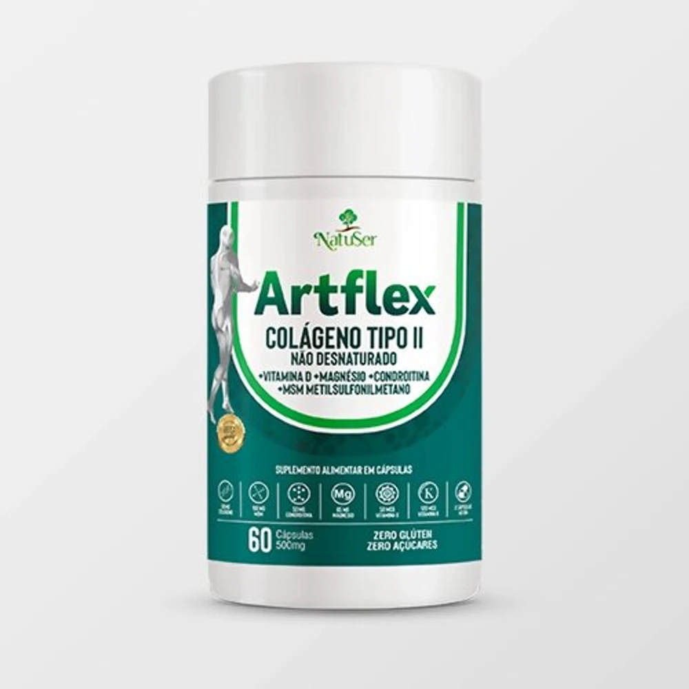 A Natuser traz o Art Flex Colágeno Tipo II Não Desnaturado , enriquecido com Vitamina D, Magnésio, Condroitina e Metilsulfonilmetano (MSM), uma fórmula pensada para cuidar da saúde das articulações de forma completa.