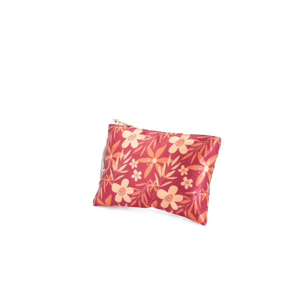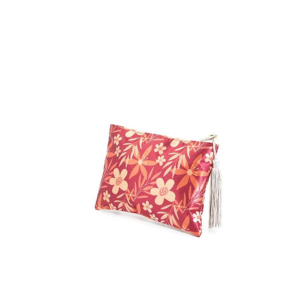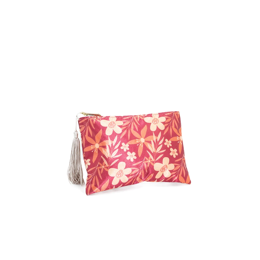 Com estampa floral exclusiva em tom vinho e acabamento em cetim brilhante, é ideal para armazenar pequenos itens com estilo — como maquiagem, bijuterias ou itens pessoais.