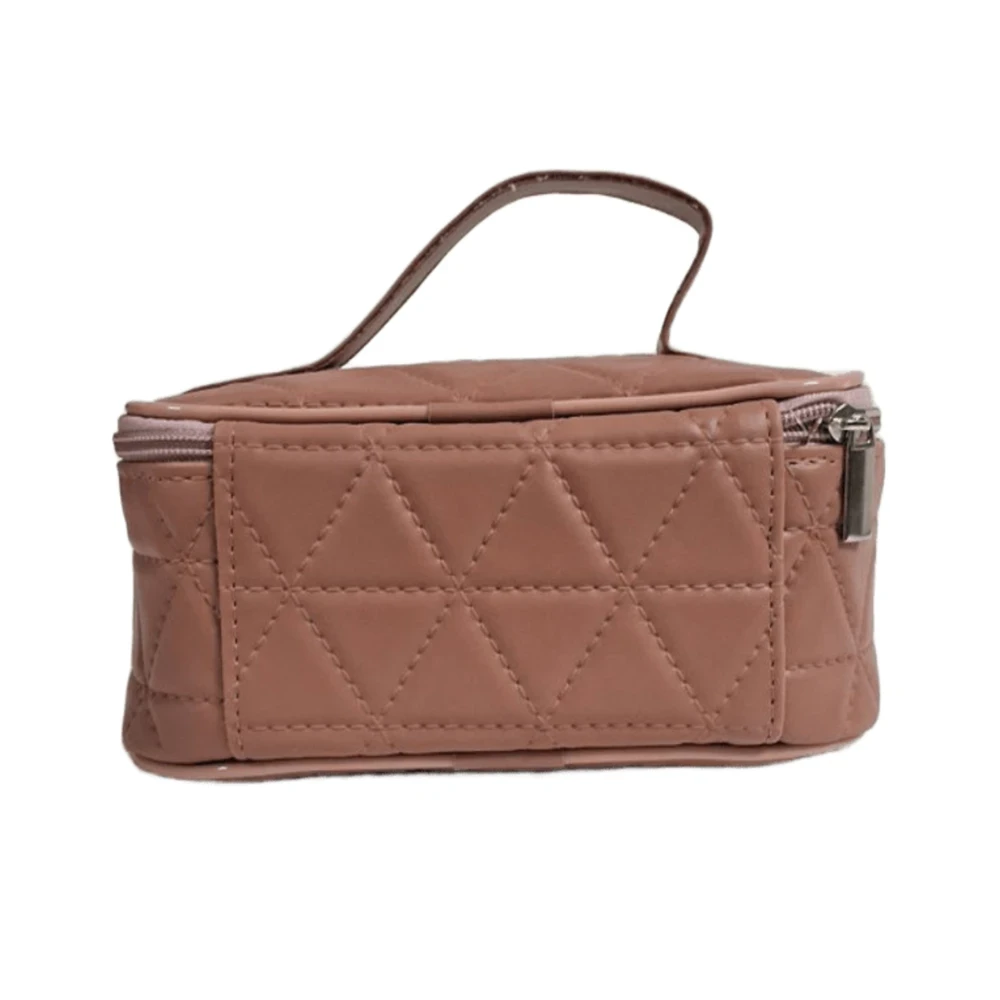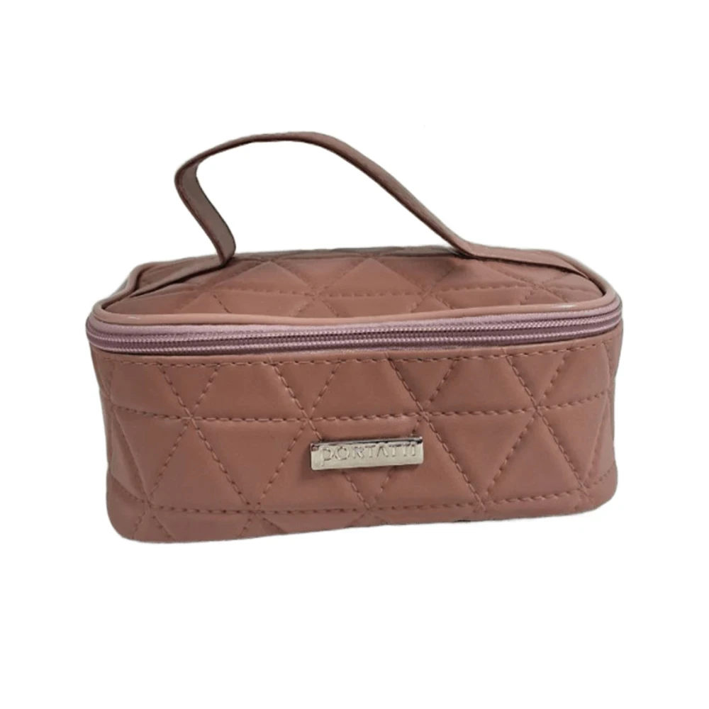 Confeccionada em material sintético resistente e fácil de limpar, conta com fechamento em zíper e alça superior que facilita o manuseio. Apesar do tamanho compacto, oferece espaço interno suficiente para maquiagens, itens de higiene ou pequenos acessórios, sendo perfeita para o dia a dia ou viagens curtas.