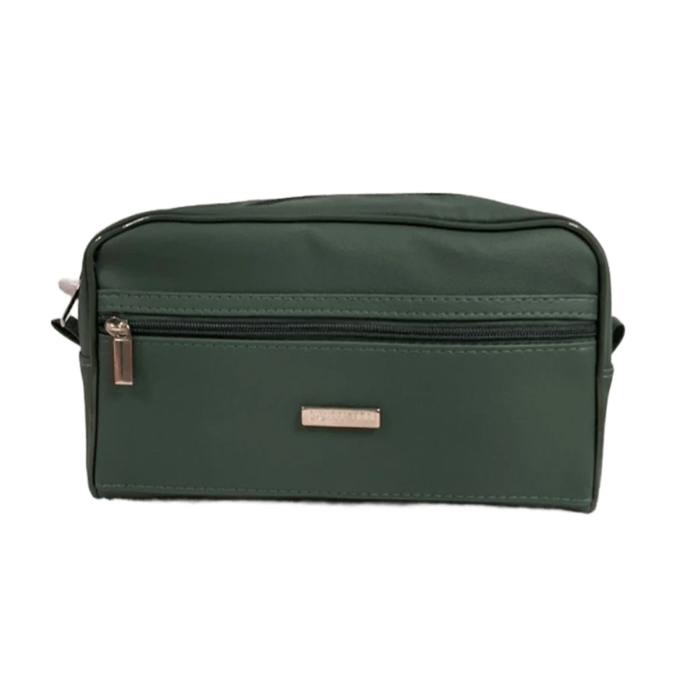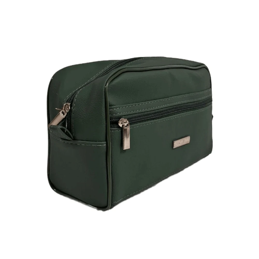 Fabricada em material sintético resistente e fácil de limpar, possui fechamento em zíper e acabamento moderno na cor verde, que adiciona um toque de frescor ao visual. Compacta e leve, é ideal para levar na bolsa, em viagens ou para manter a rotina organizada com charme.