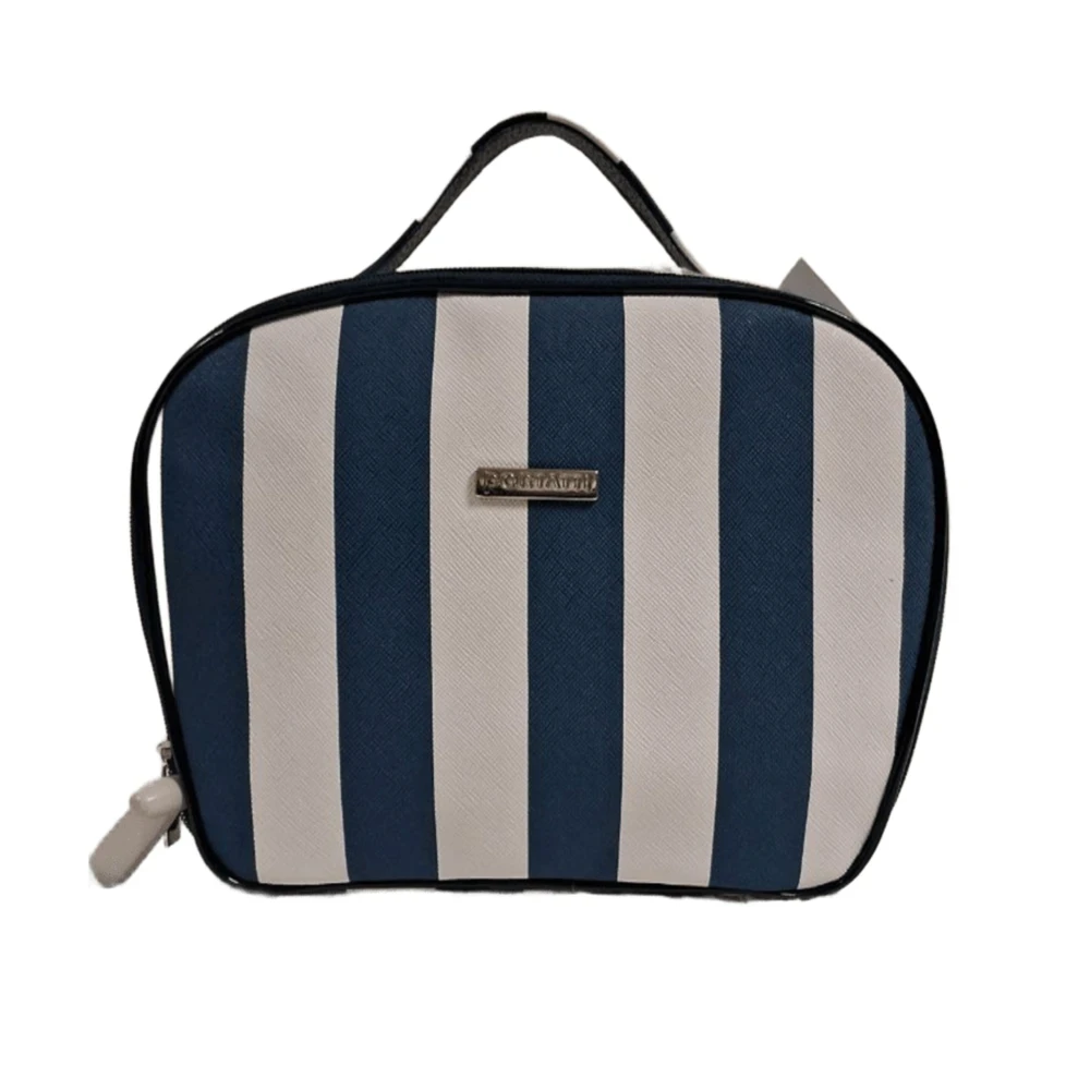A Necessaire Portatti Listrada Redonda com Alça M é um acessório espaçoso e elegante, ideal para quem deseja praticidade e estilo na organização dos itens pessoais. Seu formato redondo combinado com estampa listrada oferece um visual moderno e atraente, perfeito para o uso diário ou para viagens.