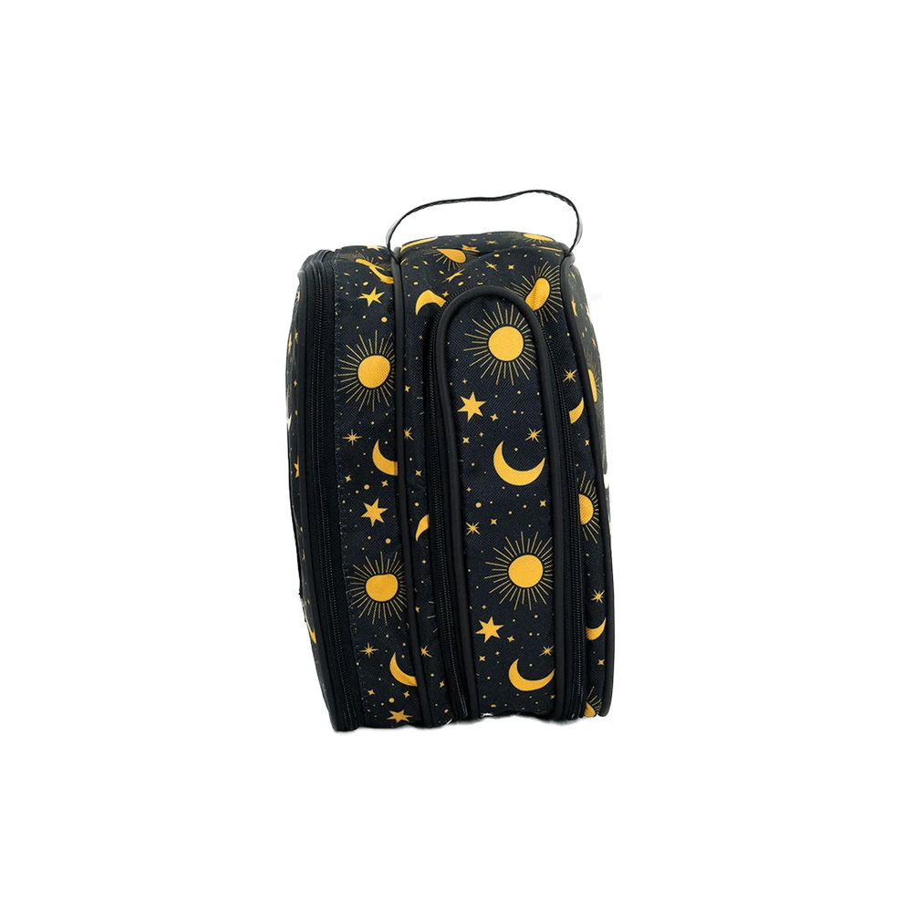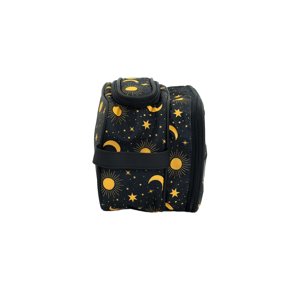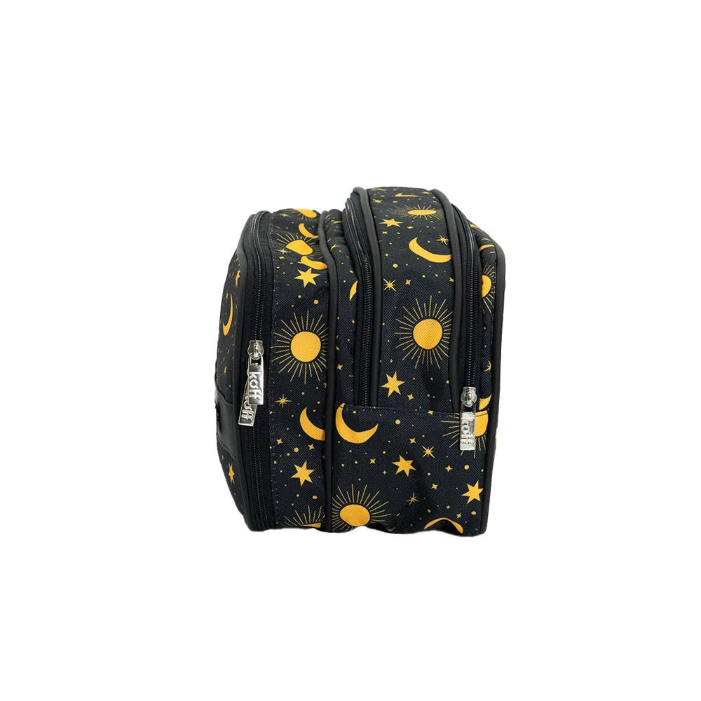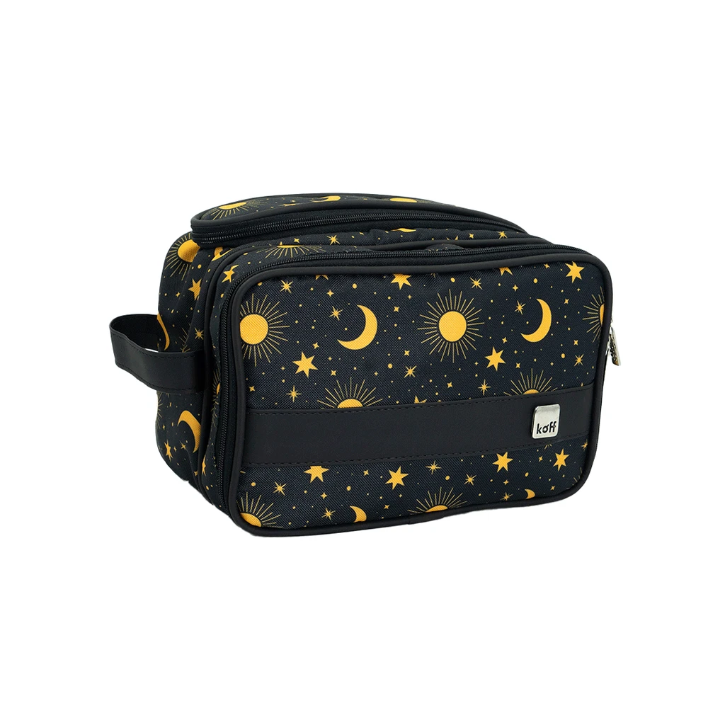 Confeccionada em poliéster estampado com a arte exclusiva da linha Eclipse, o modelo combina estilo e organização com acabamento impecável. Possui puxador personalizado em níquel, plaquinha metálica Koff® e compartimento interno espaçoso.