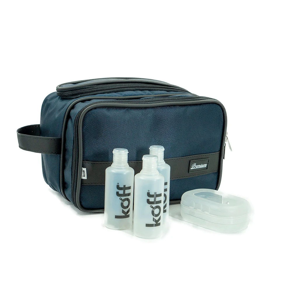 A Necessaire Viagem Executivo Premium da Koff® foi pensada para quem precisa de organização sem excessos. Com dimensões de 15,5x24x14, é perfeita para caber em malas de mão e seguir os padrões máximos permitidos para frascos em voos, tornando-a ideal para viagens rápidas, conexões e deslocamentos frequentes.