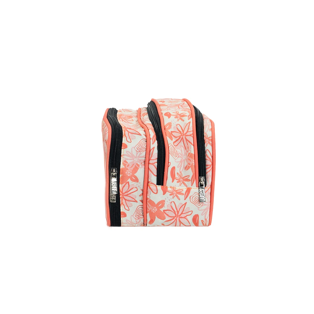 A Necessaire Viagem Flores da Koff® na versão Floral Laranja combina funcionalidade com uma estampa vibrante e exclusiva, ideal para quem busca praticidade com um toque marcante de cor. Perfeita para viagens curtas, academia ou o dia a dia, ela acomoda produtos de higiene e cuidados pessoais com segurança e organização.