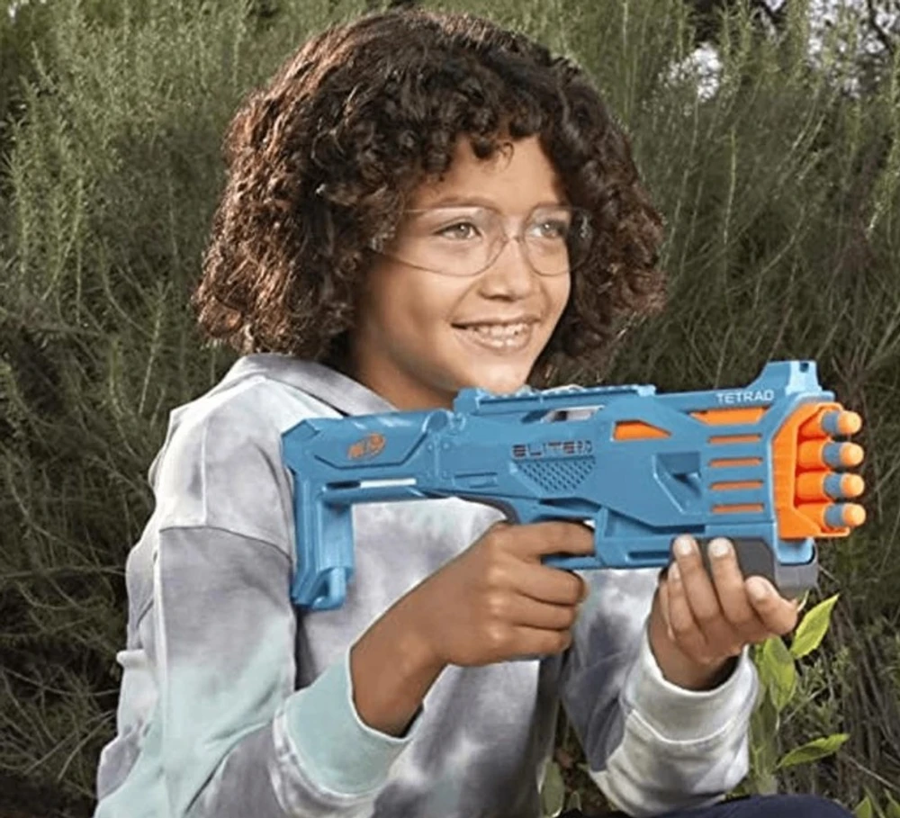 LANÇAMENTOS MÚLTIPLOS: O lançador Tetrad QS-4 possui 4 tubos frontais que permite lançar 4 dardos em sequência; FÁCIL DE USAR: Lançamentos em 3 passos simples! Basta carregar os dardos nos tubos frontais, puxar o carregador para trás e para frente e apertar a alavanca de disparo para lançar; INCLUI 4 DARDOS OFICIAIS NERF ELITE: Contém 4 dardos oficiais Nerf Elite de espuma, testados e aprovados para performance e qualidade, para brincar em lugares fechados ou abertos; LANÇADOR PRONTO PARA PERSONALIZAR: Lançador adaptável para qualquer aventura com trilho tático para personalizar o lançador. O lançador Nerf Elite 2.0 Tetrad QS-4 possui 4 tubos frontais que permite lançar 4 dardos em sequência. Lançamentos em 3 passos simples! Basta carregar os dardos nos tubos frontais, puxar o carregador para trás e para frente e apertar a alavanca de disparo para lançar. Contém 4 dardos oficiais Nerf Elite de espuma, testados e aprovados para performance e qualidade, para brincar em lugares fechados ou abertos. A aventura sobe de nível com os lançadores Nerf Elite 2.0, que apresentam recursos de personalização integrados para que se possa utilizar acessórios e sair na frente na aventura Nerf. É hora de montar seu próprio lançador Nerf Elite 2.0 para otimizar sua estratégia de jogo e trazer desempenho tático e flexibilidade a todas as aventuras! Recomenda-se o uso de óculos (não inclusos). Acessórios vendidos separadamente, sujeitos à disponibilidade. Não requer pilhas. Nerf e todas as propriedades relacionadas são marcas registradas da Hasbro.