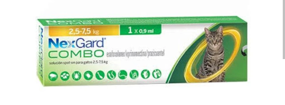 Nexgard combo , solução tópica, é indicado para gatos adultos e filhotes a partir de 8 meses de idade ,para tratamento de infecção e infestação mistas de ectoparasitas (pulgas e sarna) e vermes .
