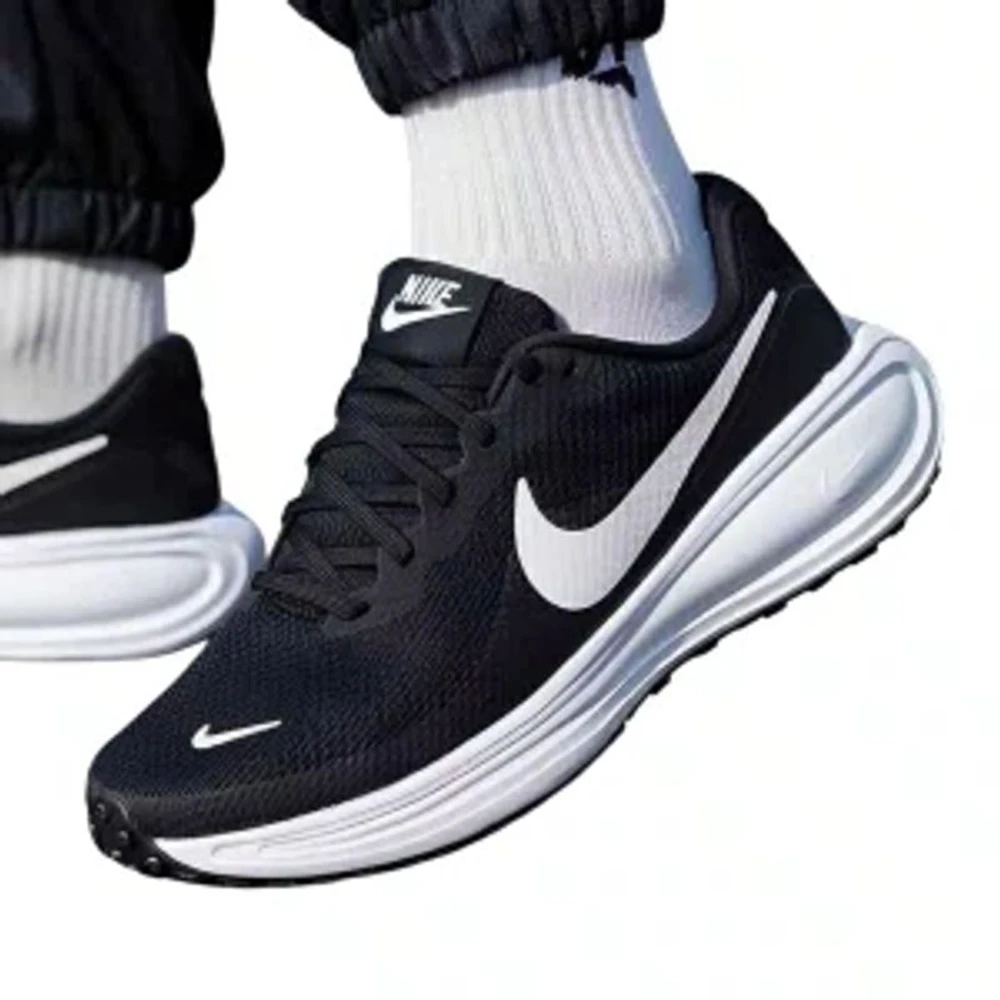 Para um treino ou corrida casual, combine o Tênis Nike Revolution 8 com uma camiseta dry-fit preta, shorts esportivos cinza e meias esportivas brancas para um visual completo e funcional.