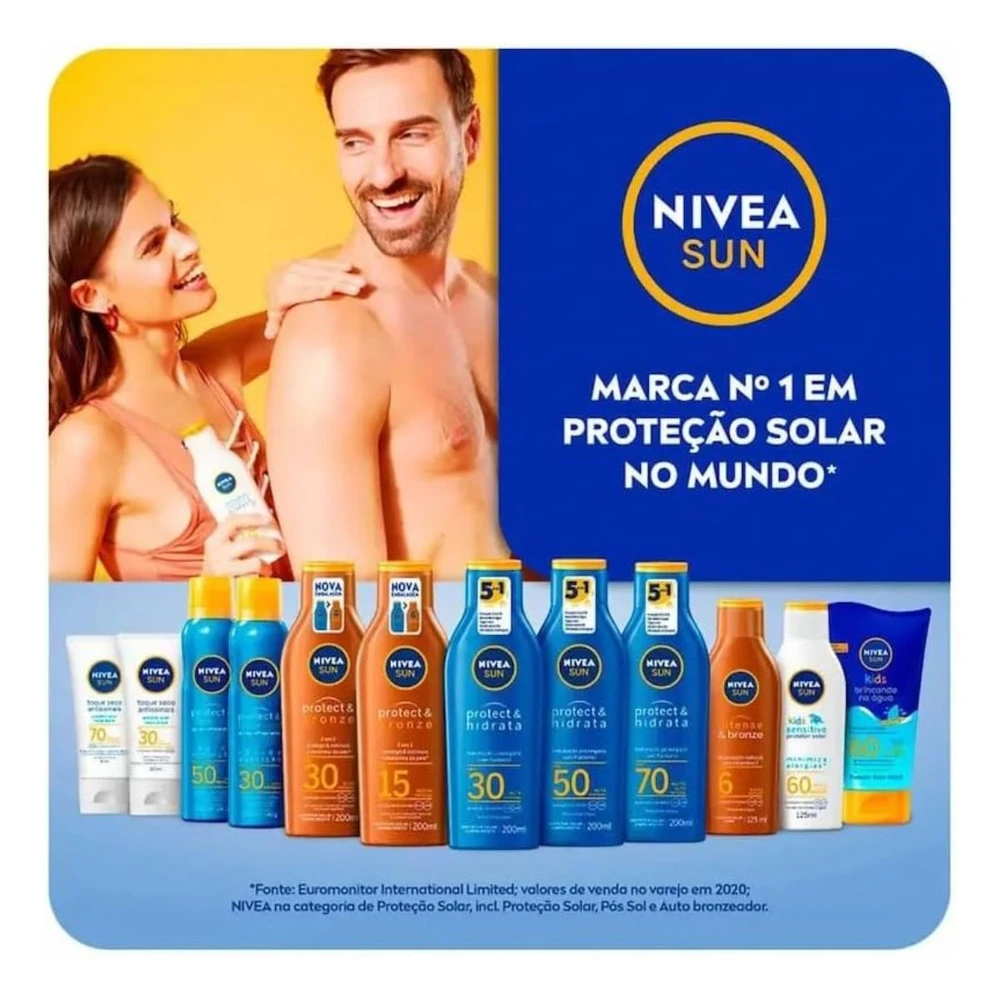 O NIVEA SUN Protect & Hidrata Facial FPS70 é uma loção especialmente criada para o rosto, oferecendo proteção muito alta contra raios UVA e UVB com hidratação prolongada e toque seco.