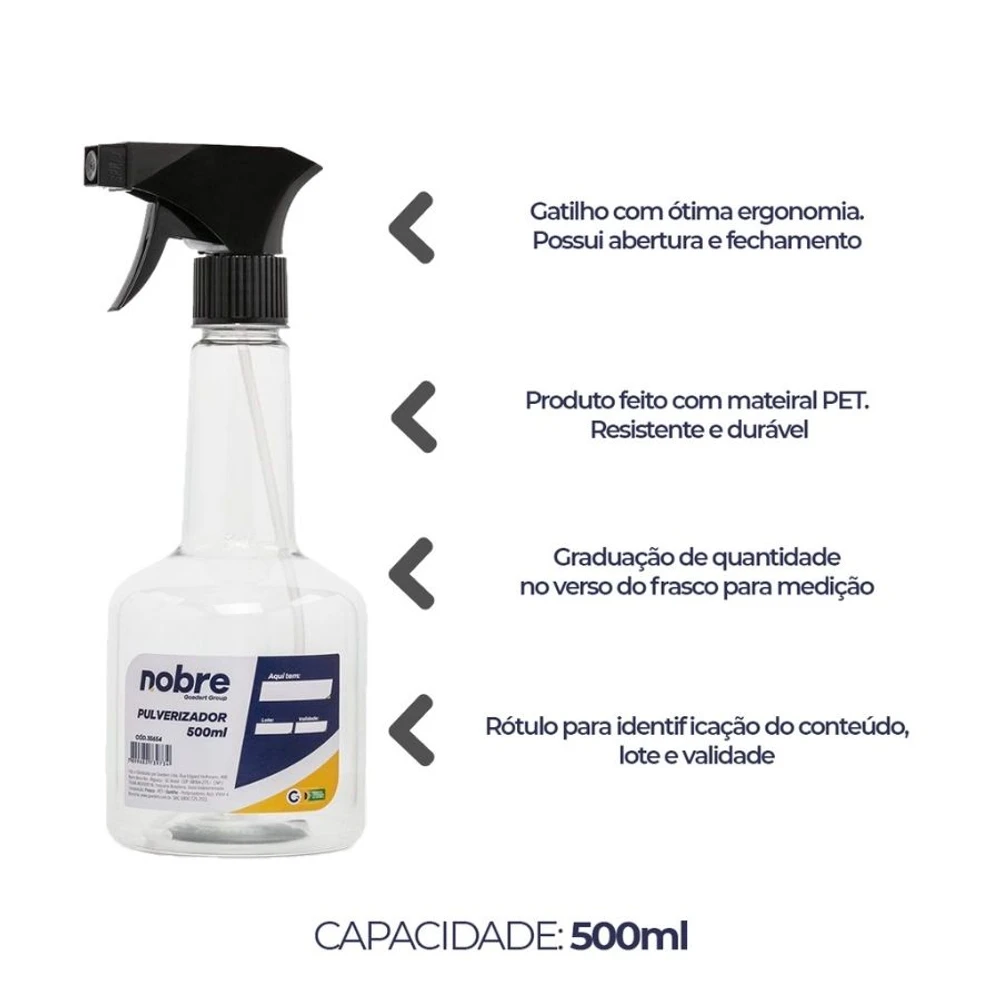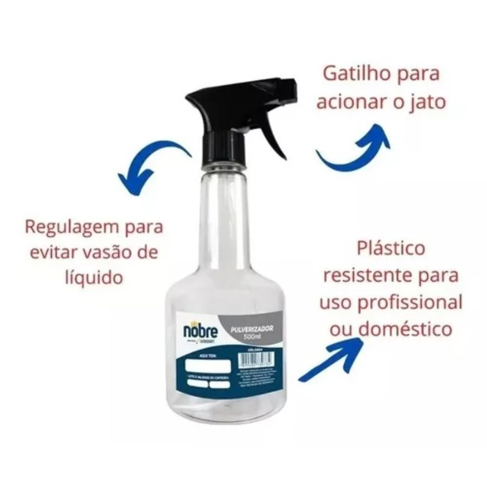 O Borrifador / Pulverizador de Spray cria uma névoa de água e seu gatilho manual é preciso e de acionamento suave para que atinja toda a região necessária sem excesso e de forma uniforme. Seu frasco de plástico de 500ml proporciona longos períodos de uso sem que seja necessário uma nova recarga. Pode ter uso doméstico ou profissional.