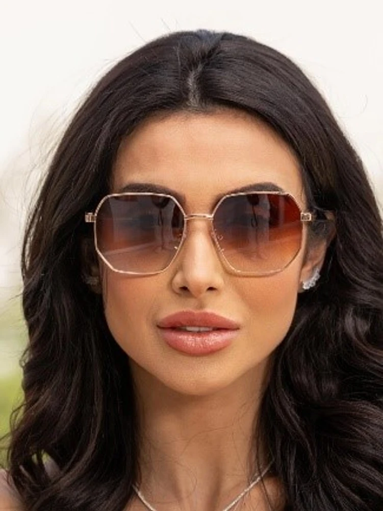 O Gram é aquele óculos que te dá o poder de arrasar em qualquer lugar! Com seu design hexagonal sofisticado em metal com lente marrom degradê e haste rosê, ele é pura elegância e atitude. É o tipo de óculos que eleva sua autoestima e faz você se sentir poderosa, seja no trabalho, no shopping ou naquele encontro especial.