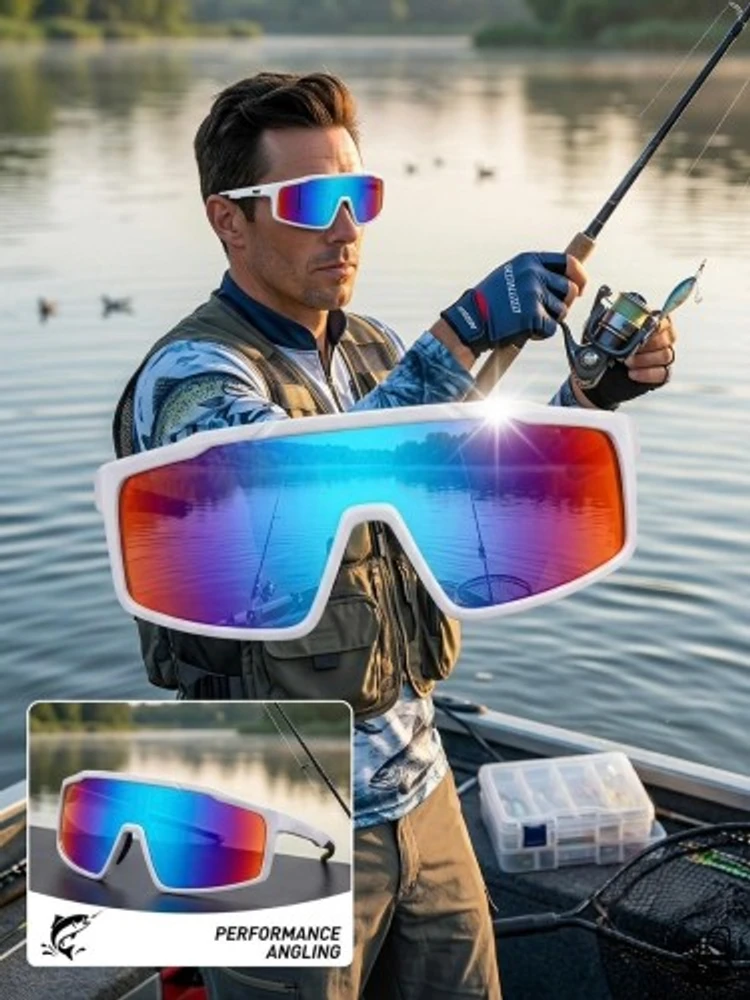 Óculos esportivo com lente espelhada multicolors, ideal para pesca e atividades ao ar livre. Proteção UV, conforto e estilo com armação resistente e design moderno.