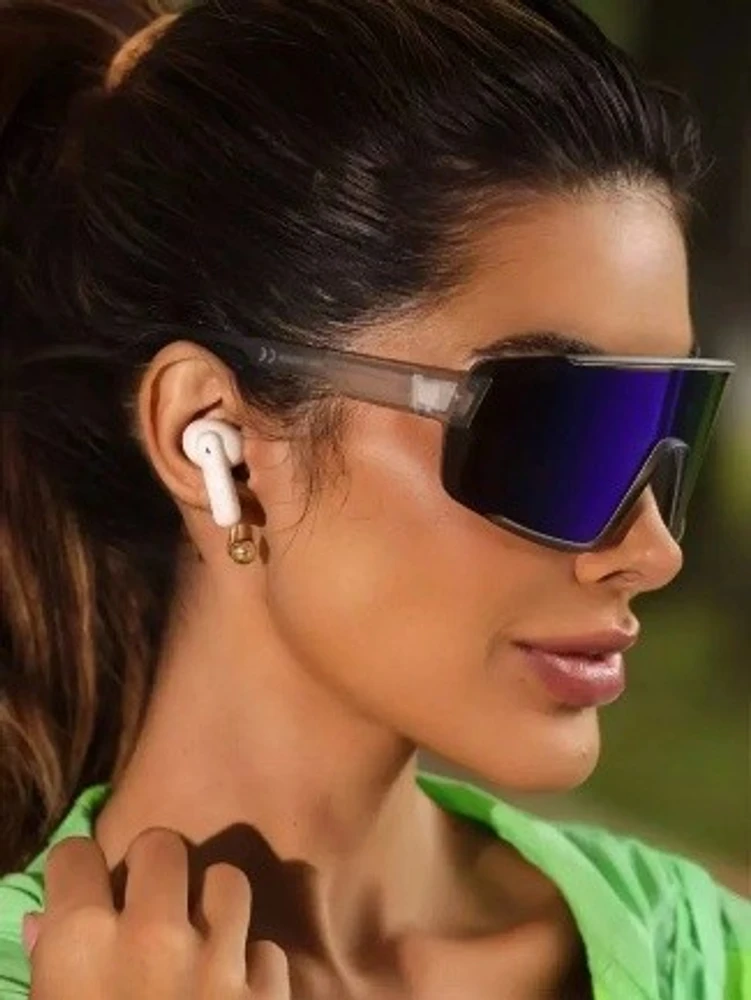 O Vortex C6 é para quem busca um visual mais refinado sem perder a pegada esportiva. Com armação cinza translúcida e lente azul espelhada, ele entrega um contraste elegante e moderno. O design shield com lente única extra grande (diâmetro 6 cm) oferece proteção máxima e campo de visão amplo, enquanto as hastes translúcidas garantem leveza visual e conforto. Com ponte de 0.9 cm e comprimento de haste de 14.5 cm, ele se adapta perfeitamente a rostos ovais, quadrados e triangulares. É o óculos que transita entre treino e lifestyle com naturalidade.
