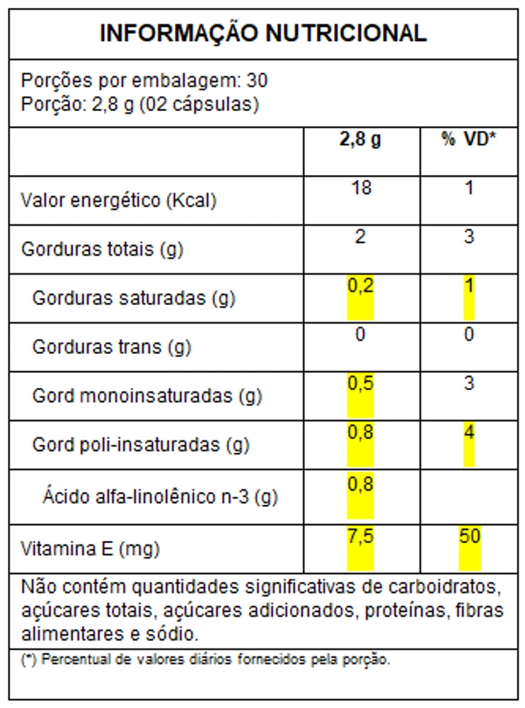 Composição da cápsula: Gelatina, Glicerina (umectante) e Água Purificada.
