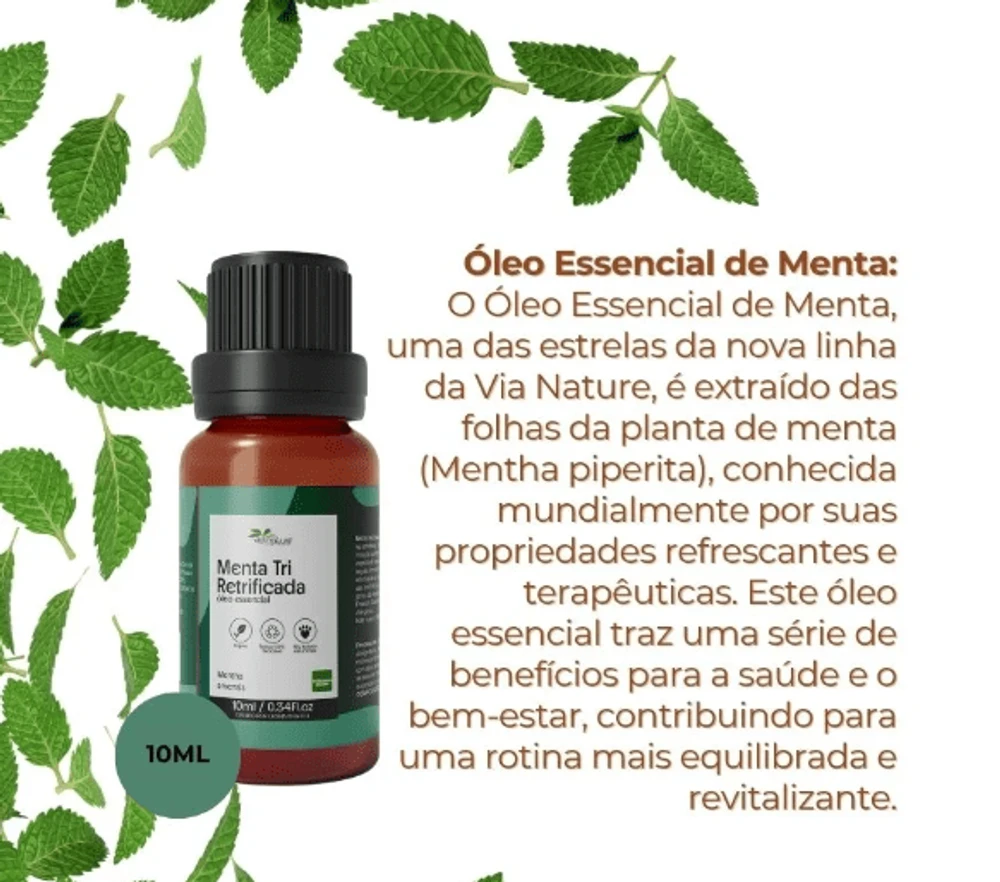 Descrição do produtoÓleo Essencial de Menta Tri Retrificada Concentrado - 10ml - 1 unidade - Viva Aroma.